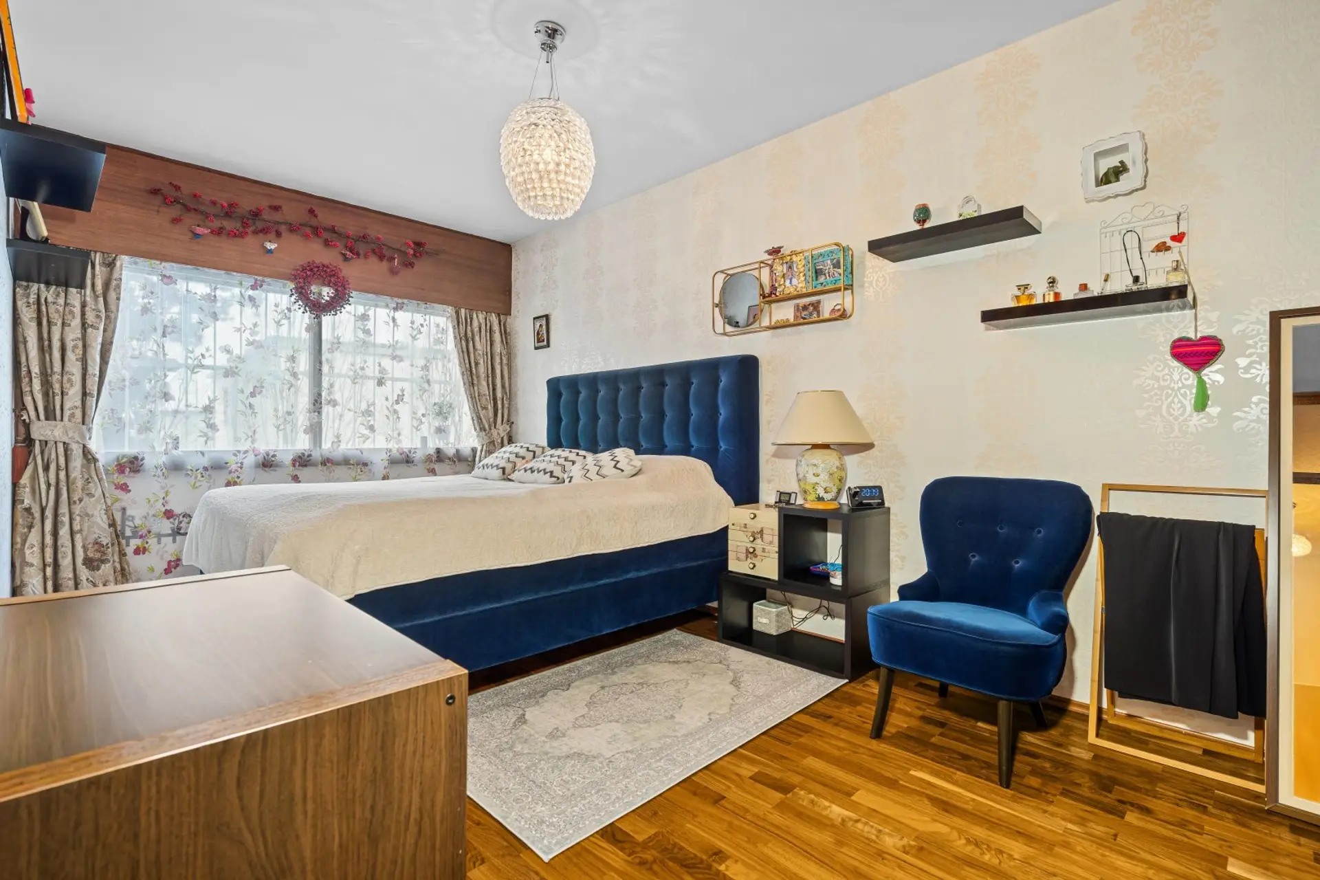 Schlafzimmer mit begehbarem Schrankraum und eigenem Badezimmer mit WC