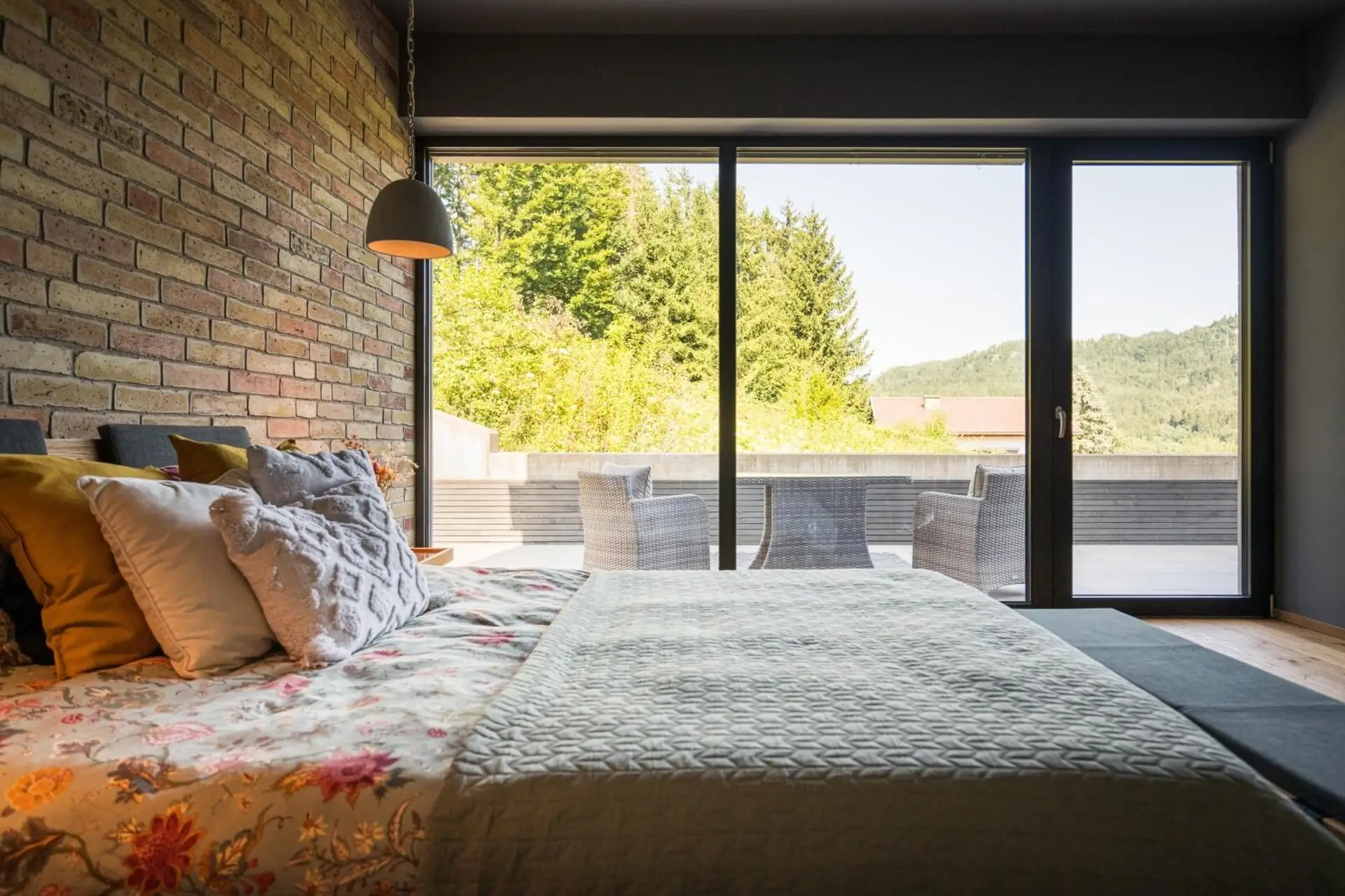 * großzügige Südwest-Terrasse mit Fernblick auf die Karawanken, ca. 56 m²