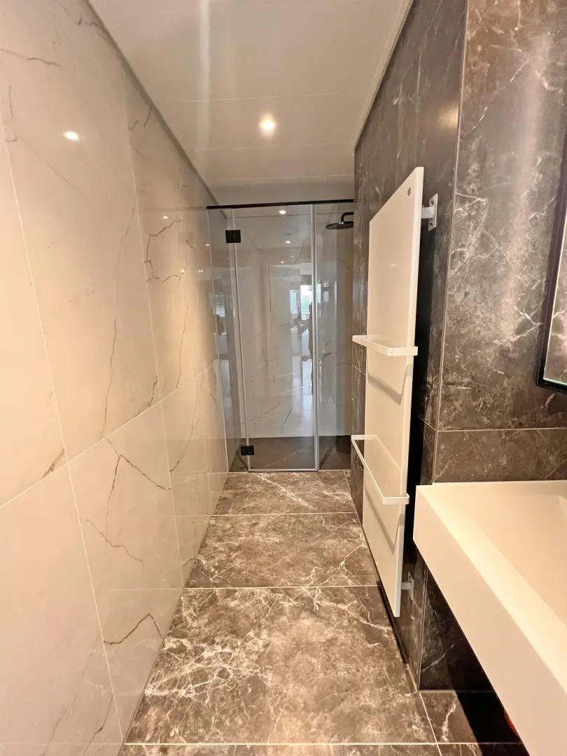 -einem Badezimmer mit Dusche und Waschbecken