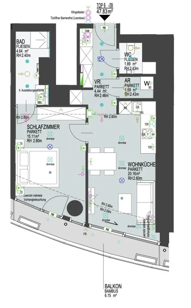 Zuzgl. Heiz,-Warmwasser,-Kälte,-Kaltwasserkosten : € 86/monatlich