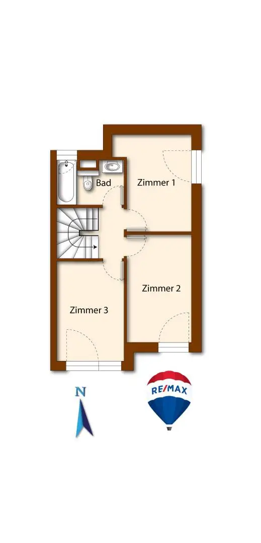 OG: 3 weitere Zimmer, Badezimmer mit Badewanne & WC