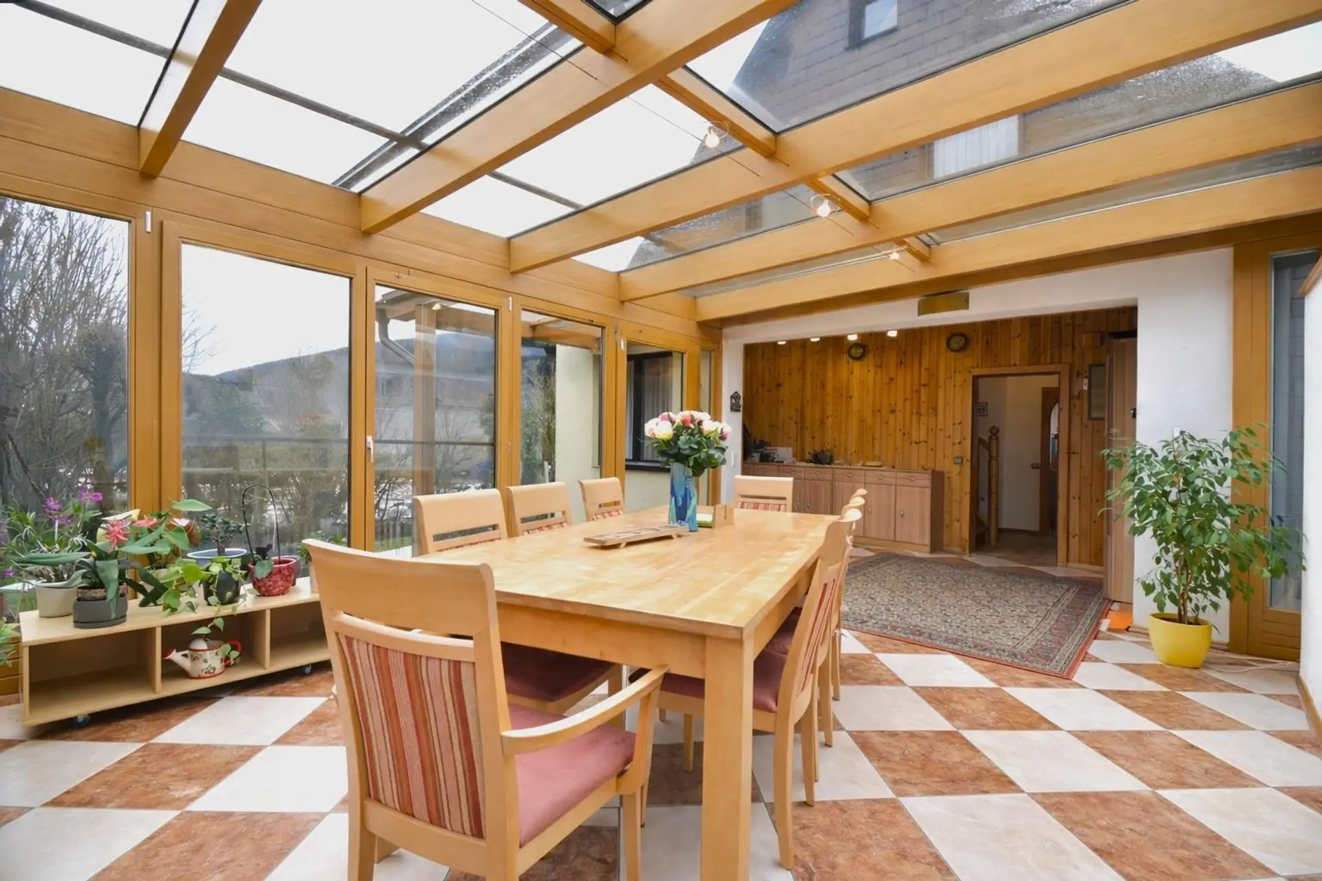 Bereits beim Betreten des Hauses empfängt Sie ein ehr geräumiger Wintergarten, der als lichtdurchfluteter Eingangsbereich dient und zu jeder Jahreszeit ein besonderes Wohngefühl vermittelt.