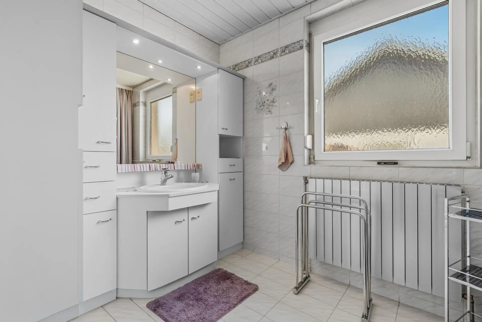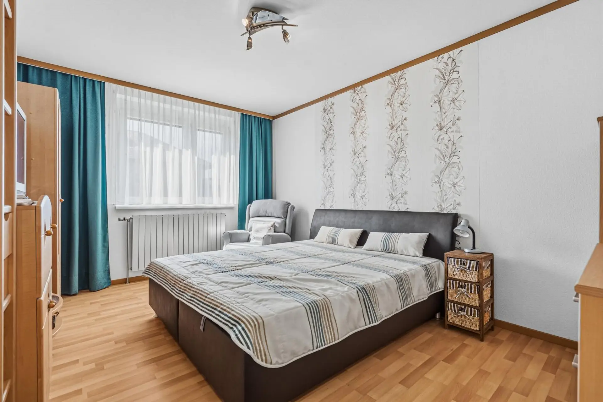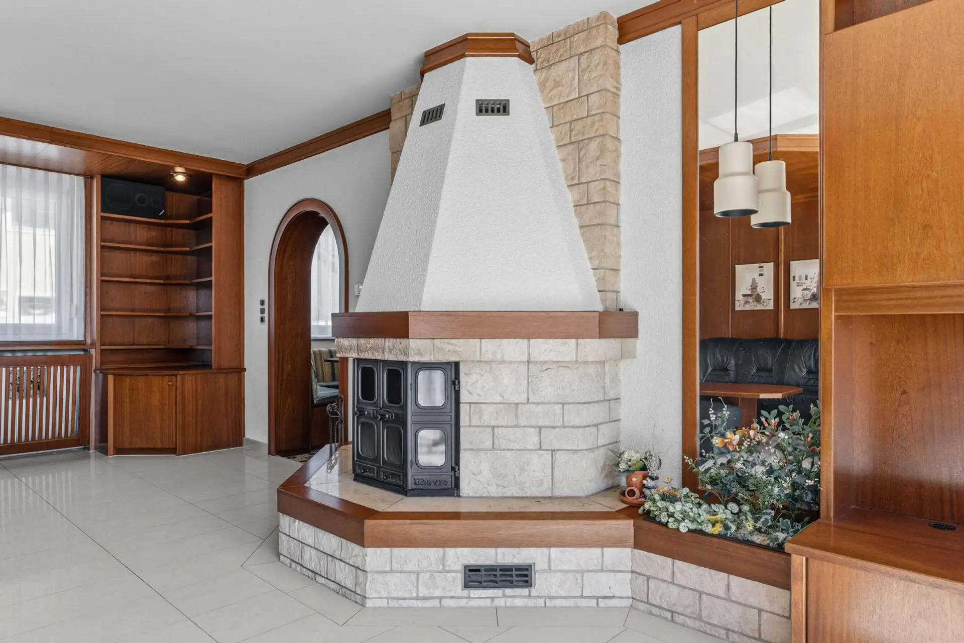 The bungalow impresses with a well-thought-out layout. A spacious entrance hall provides central access to all rooms. The property includes a kitchen with dining area, three bedrooms, a bathroom, and a separate WC. The large, bright living room offers a wonderful view of the well-kept garden and invites relaxation. A fireplace adds extra coziness, providing pleasant warmth during winter months or transitional seasons. Additionally, the living room features underfloor heating, optimally positioned in the living area and also present throughout the house wherever tiles are installed.