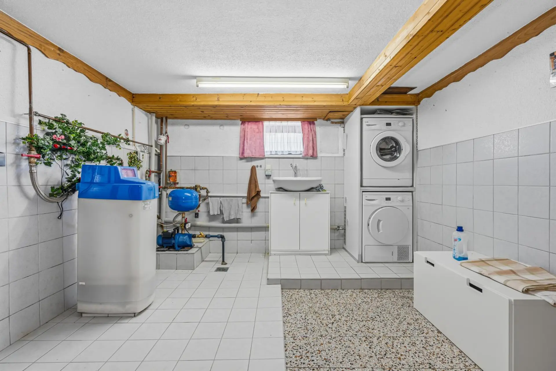 The house is connected to the sewage system, has its own well for garden irrigation, and, of course, a drinking water connection via the municipal supply.
