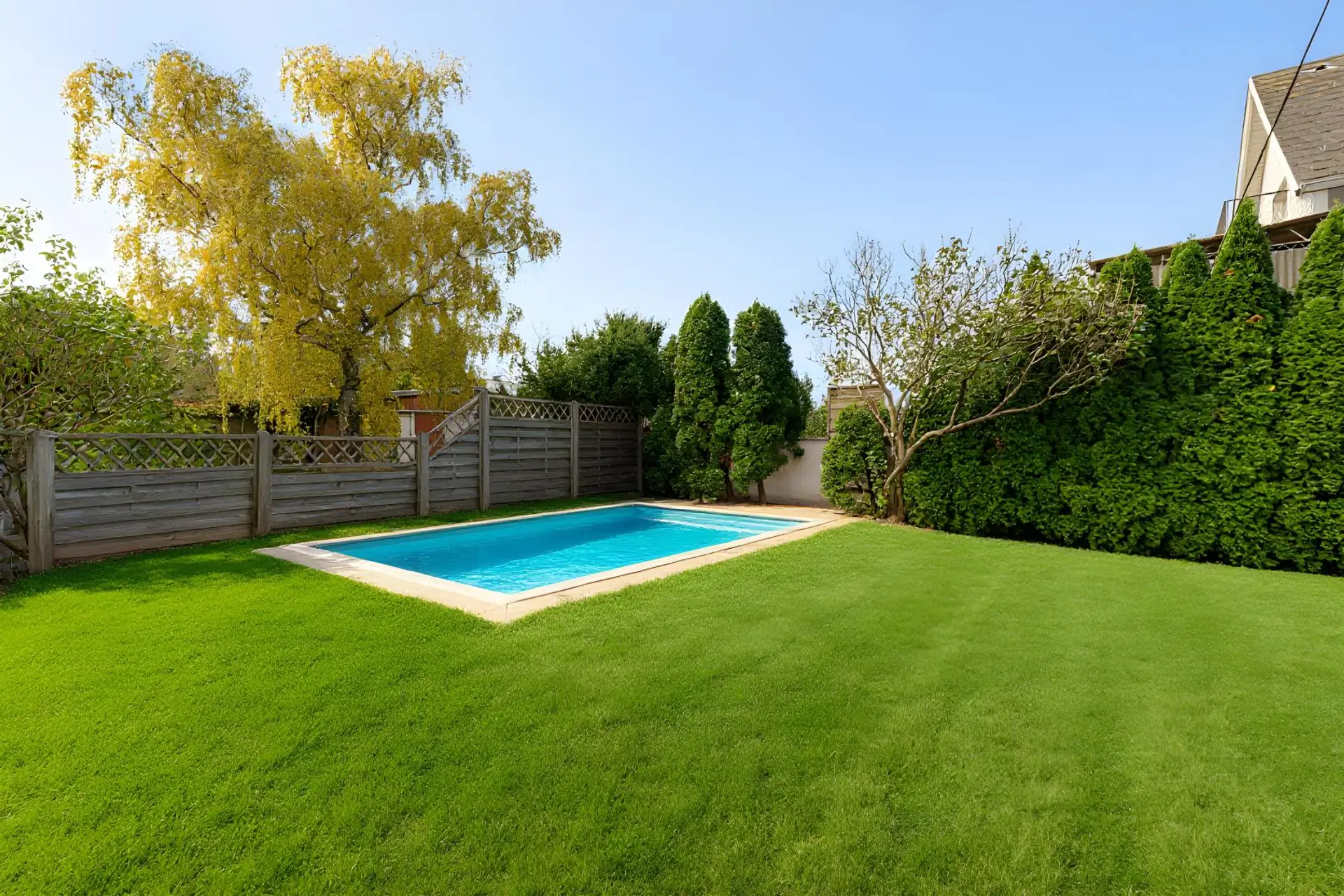 Der gepflegte Garten überzeugt mit seiner Größe und Gestaltungsmöglichkeiten.