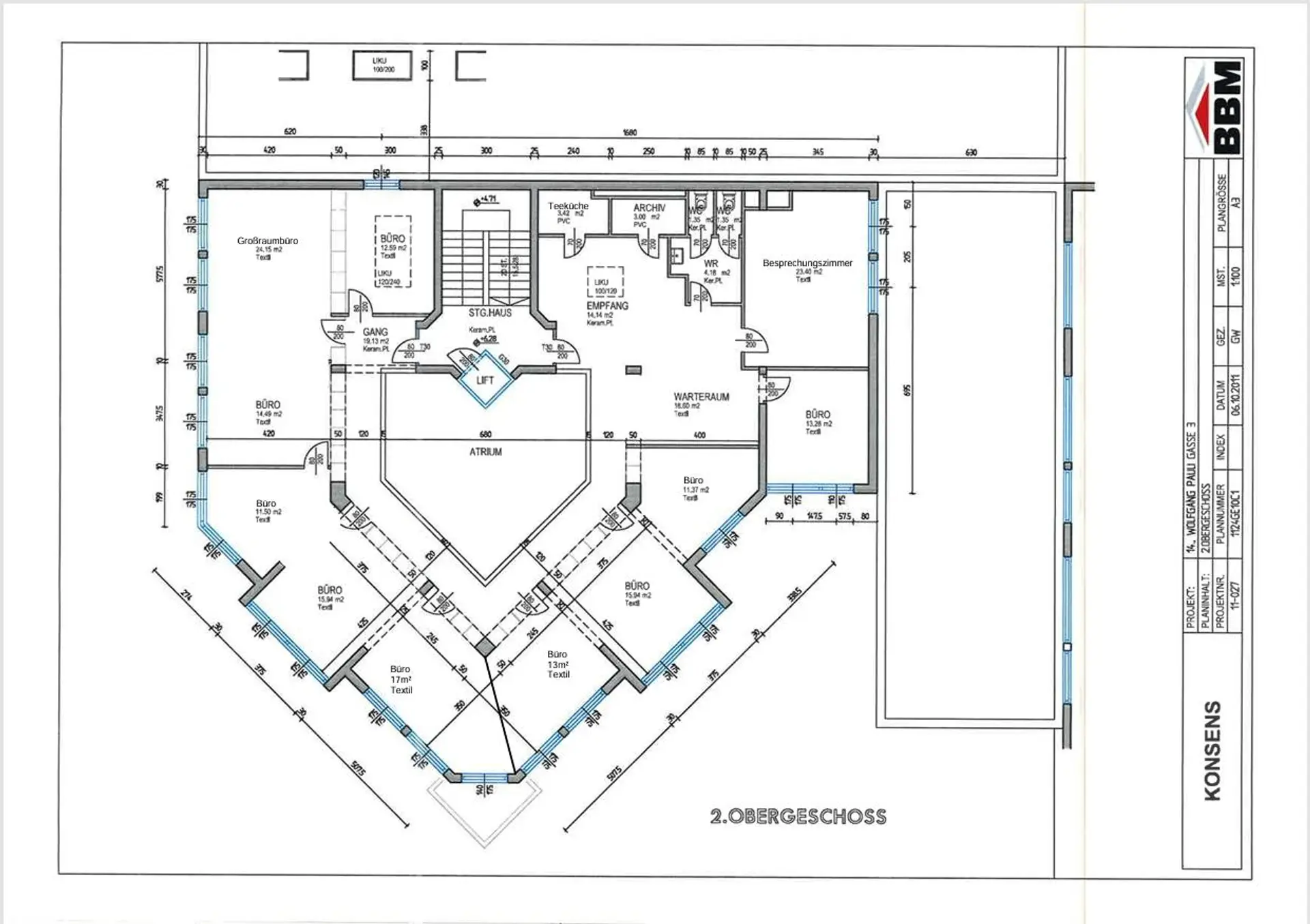 8 Büros mit Flächen zwischen 11 und 17 m²,