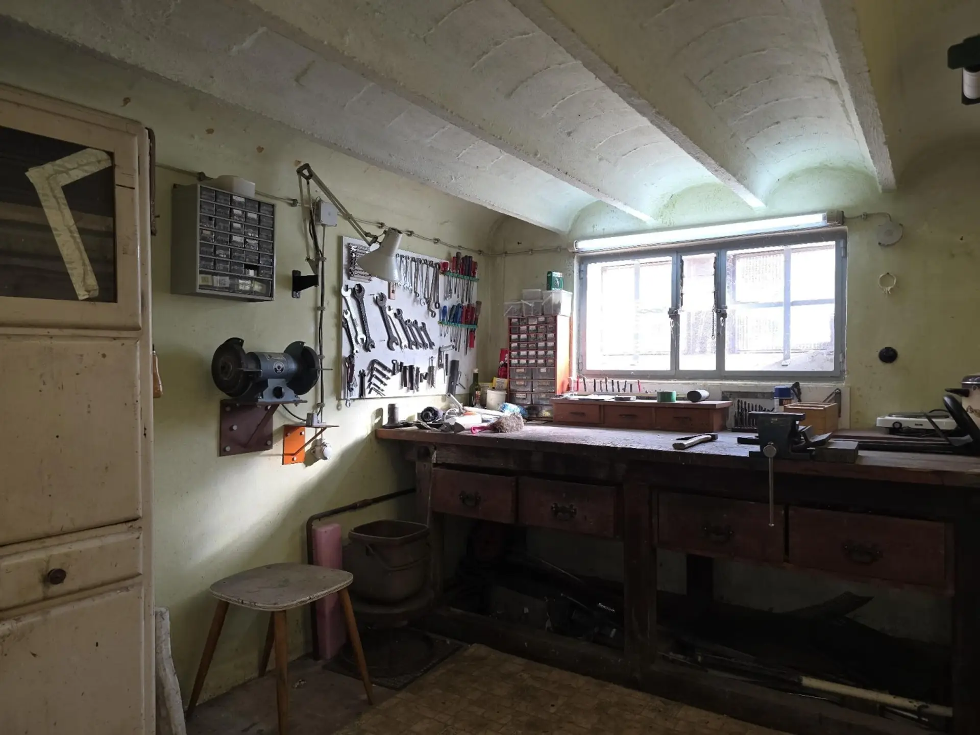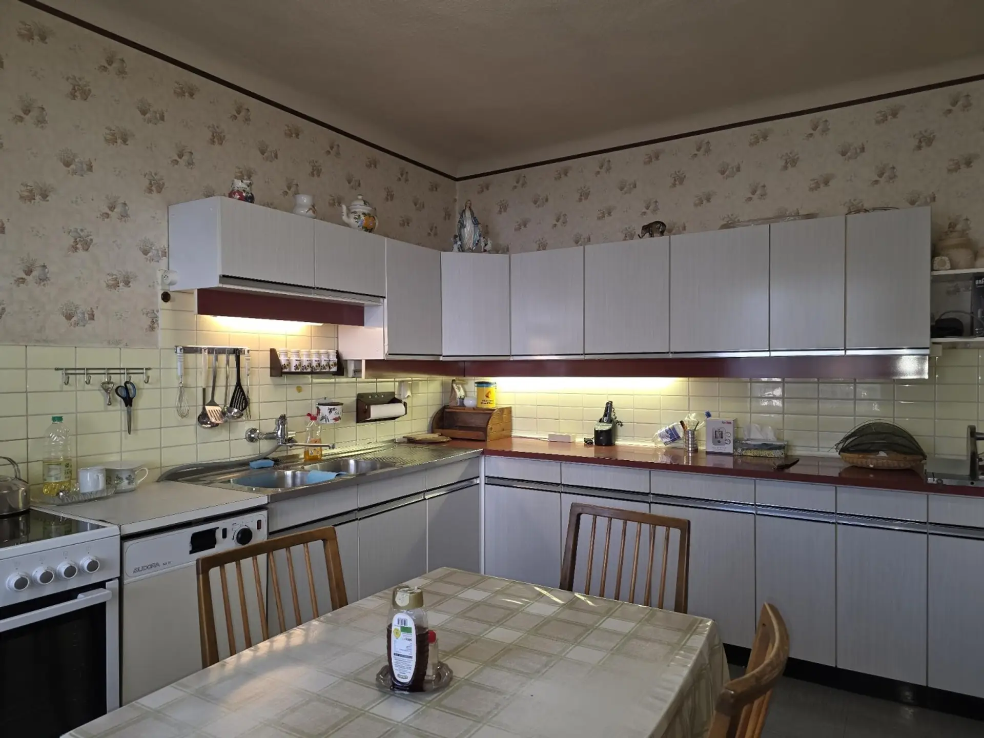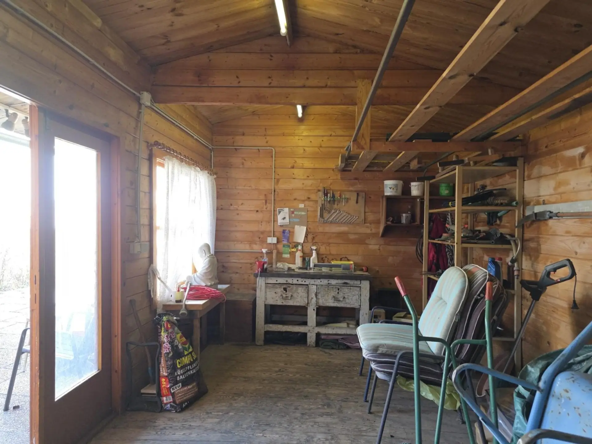 Das Haus ist voll funktionstüchtig, in gepflegtem Zustand und bei Bedarf sofort beziehbar, aber natürlich in die Jahre gekommen. Das „PEEL“-ing fehlt, kann aber sanft und in kleinen Schritten vorgenommen werden. Heizung Gas Zentral. Sehr gut nutzbares Gartenhaus.