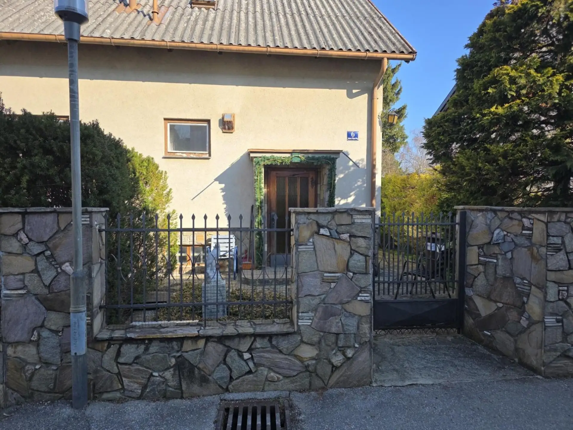 Schon der Zugang über die verkehrsberuhigte Zufahrtsstraße verspricht Lebensqualität, dazu ist die hochwertige Einfriedung, professionell mit Naturstein gearbeitet, ein erster, wahrer Blickfang.