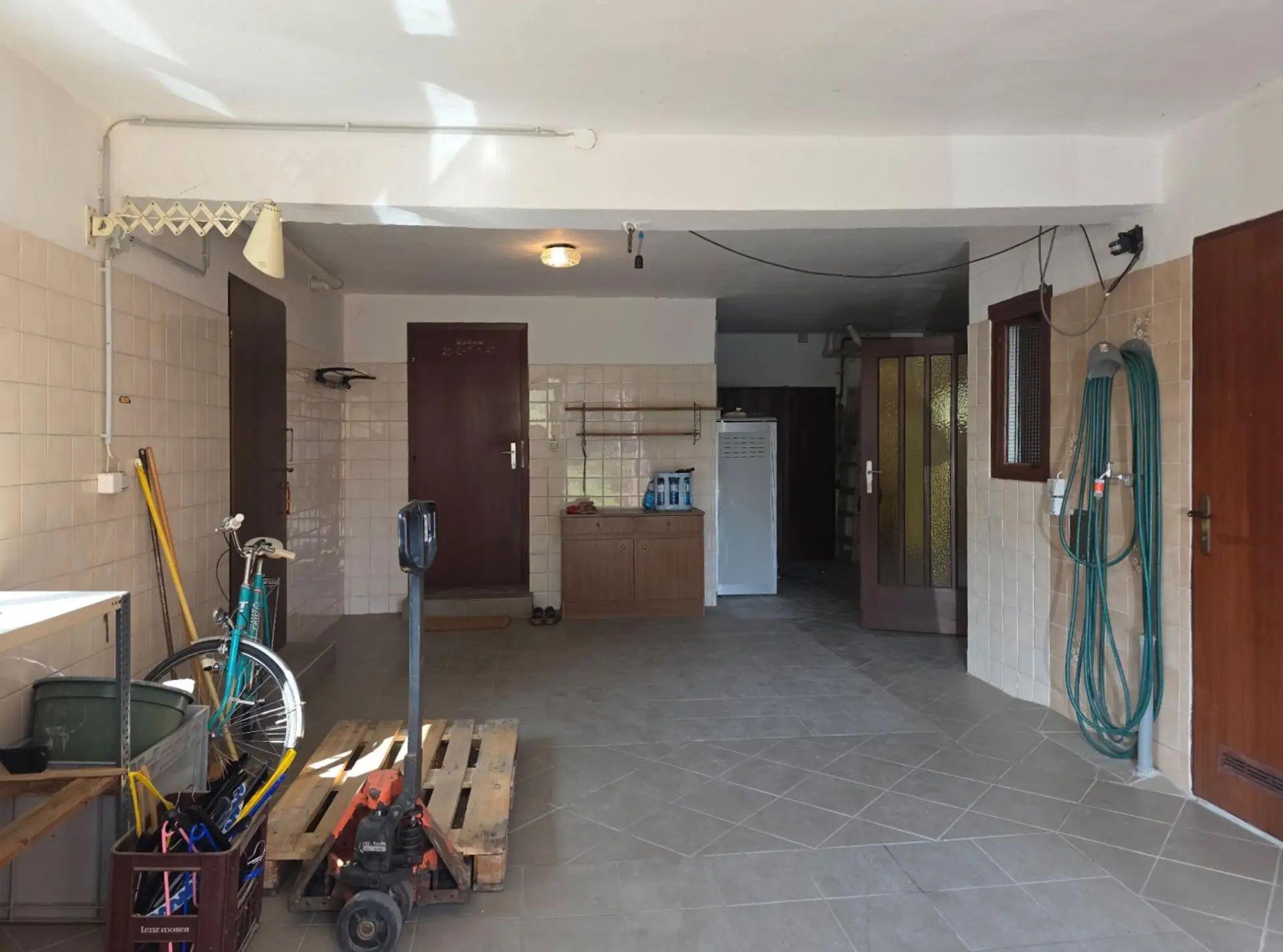 Das Haus wurde 1971 massiv errichtet und laufend instandgehalten. Im Erdgeschoß befindet sich ein zentraler Arbeitsraum mit Zugang zu Wohntrakt und in den Garten, in den ca. 20m² großen Erdkeller, den Heizraum, Waschraum mit Dusche, zwei Lagerräumen, einer Toilette, dem Büro/Jausenraum (war früher "Ab-Hof-Verkauf"-Stelle) und der Garage mit Seitensektionaltor, die auch als Lagerraum verwendet werden kann. Bei Bedarf kann im Erdgeschoß zusätzlicher Wohnraum geschaffen werden.