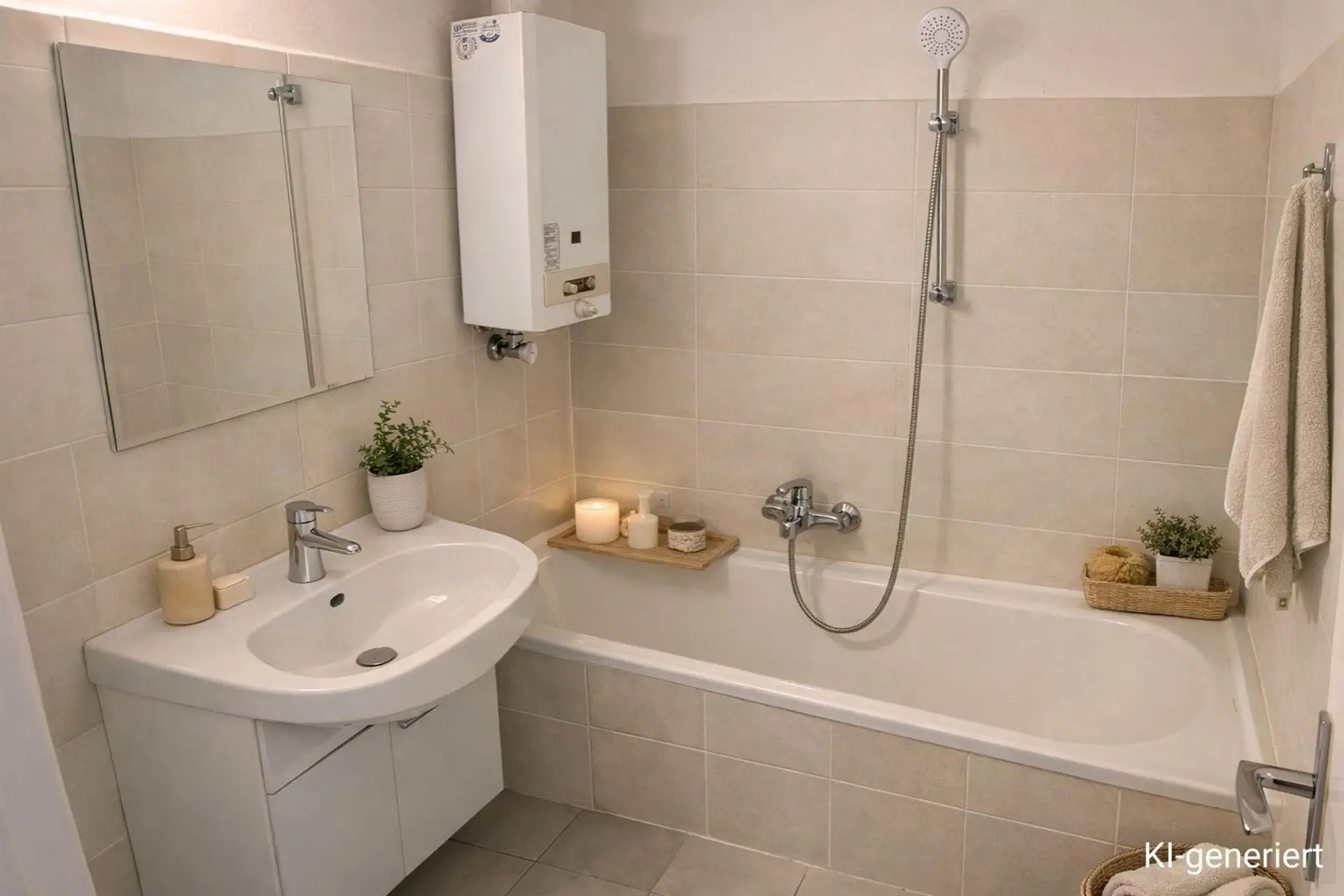 Die gezeigten Bilder wurden mit Unterstützung von KI erstellt und dienen als Beispiel für die Inneneinrichtung der Wohnung.