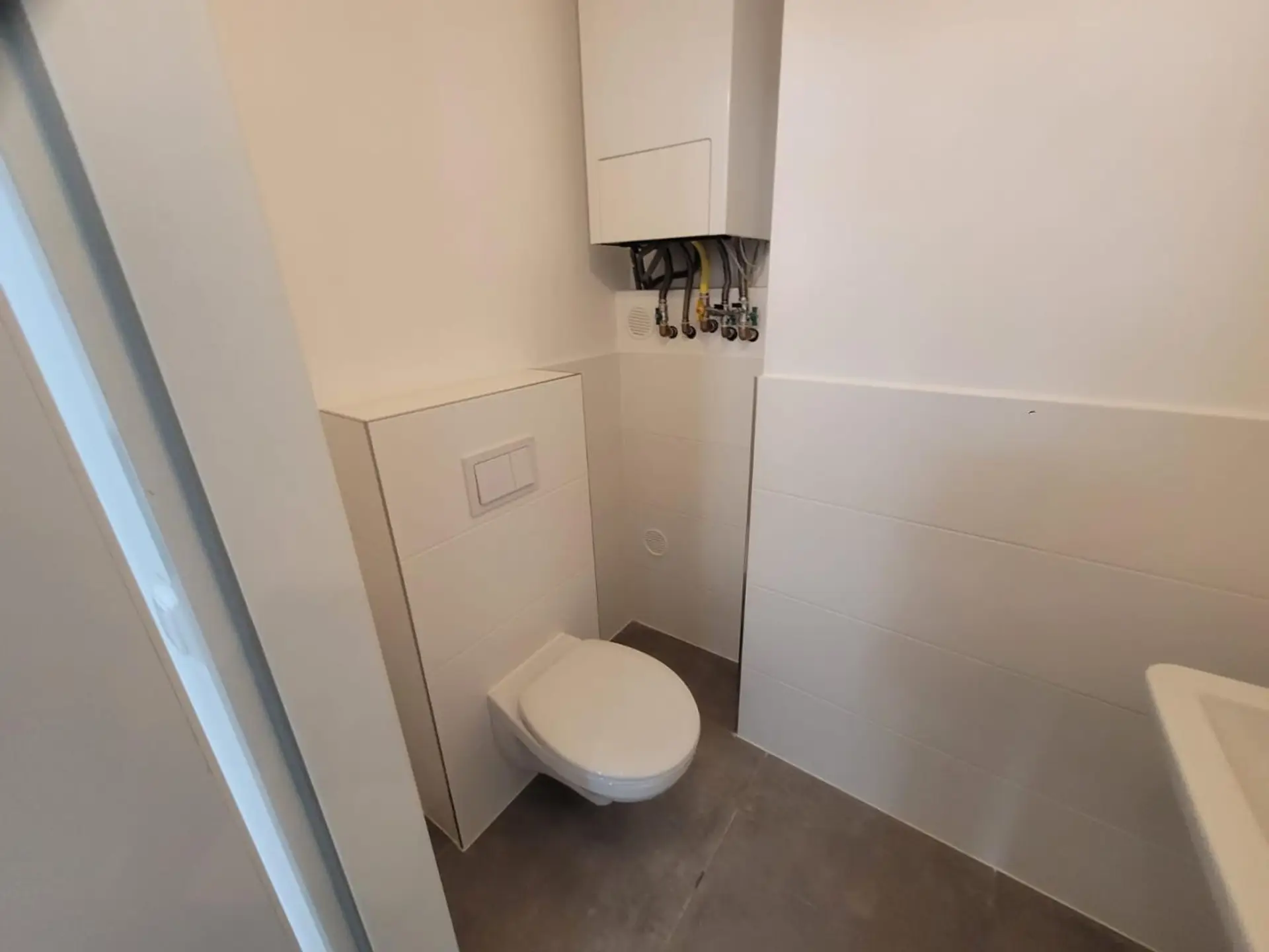Die Toilette ist vom Vorzimmer aus begehbar.