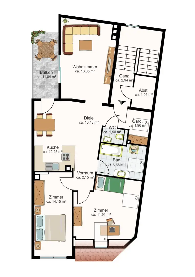 Sowohl von der Küche, als auch vom Wohnzimmer gelangen Sie auf den gemütlichen Balkon, der zum Entspannen im Freien einlädt.