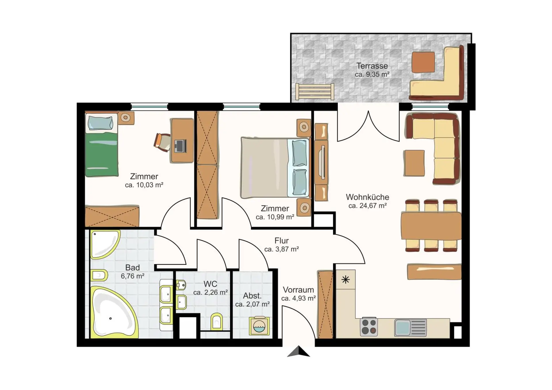 Besonderes Highlight ist die ca. 9,35 m² große Terrasse – perfekt zum Entspannen und Genießen.