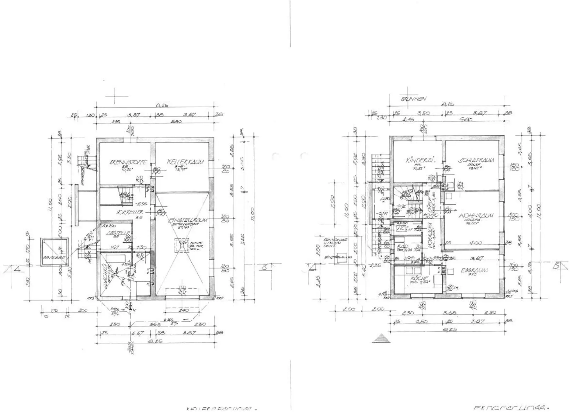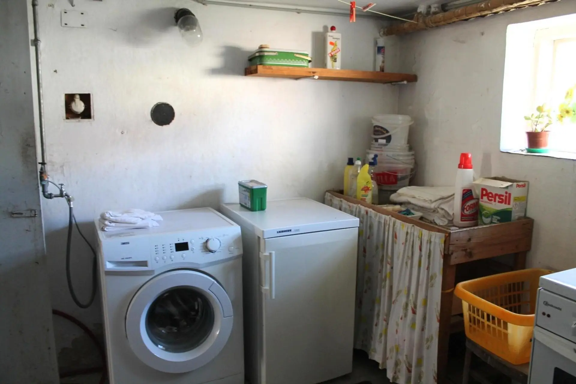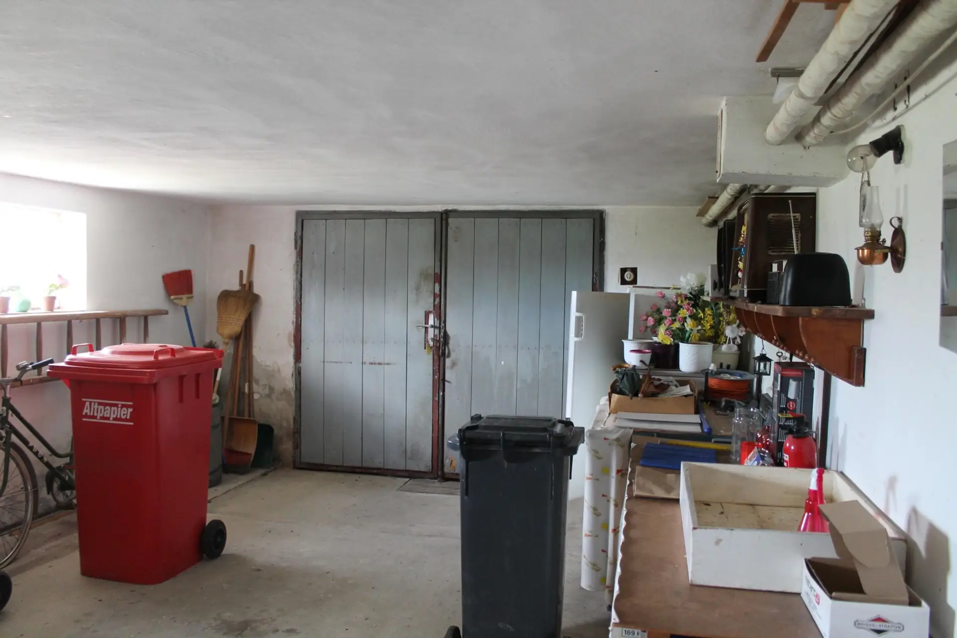 Das Haus ist voll unterkellert, im Keller befindet sich der Heizraum (Gastherme und Kessel für feste Brennstoffe), eine kleine Werkstatt, die Waschküche, ein Lagerraum und die Garage.
