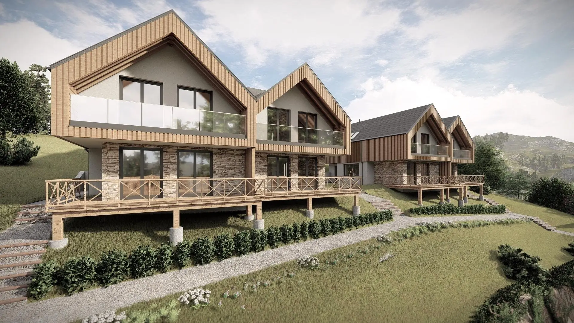 Die genehmigungsfähige Planung von jeweils 2 Chalets ist vorhanden – das Projekt sieht auf rund 1.390 m² Grund die Bebauung zweier exklusiver Doppelchalets mit gesamt 4 Einheiten vor. Die zweigeschossigen Gebäude weisen dabei eine Gesamtwohnfläche von ca. 448 m² auf. Die kaufgegenständliche Liegenschaft besteht dabei aus zwei Grundstücken mit ca. 693 m² sowie ca. 694 m².