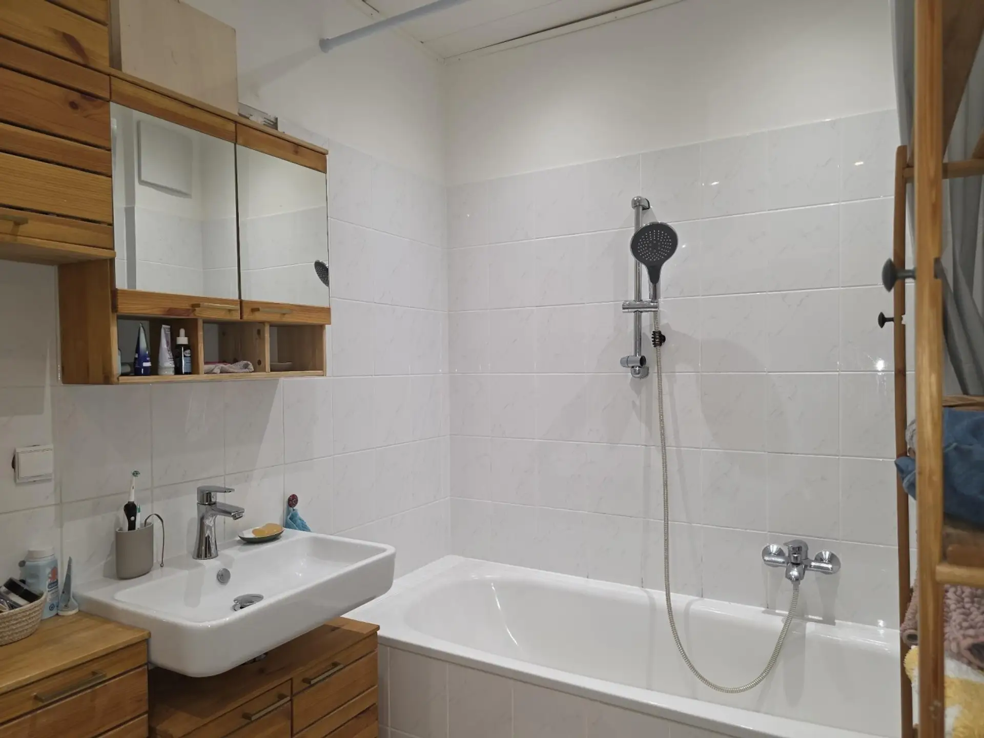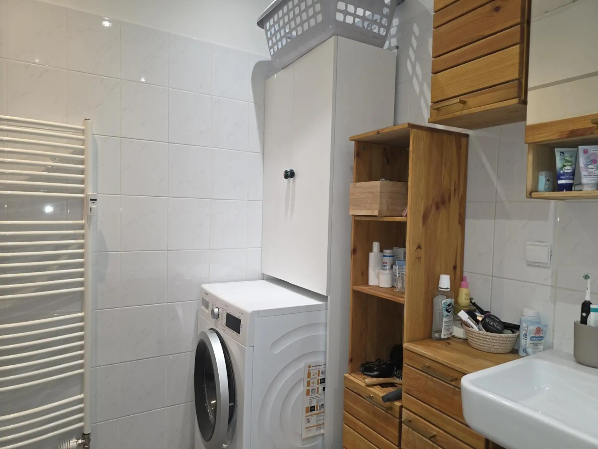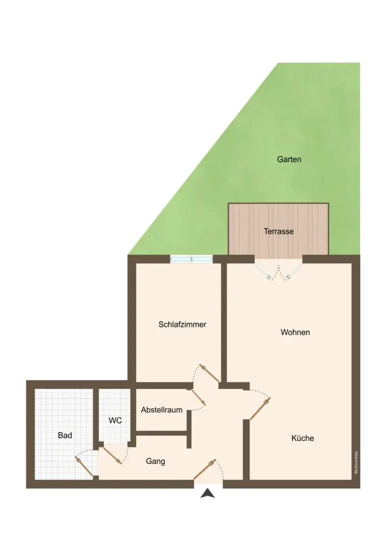 Beim Betreten der Wohnung empfängt Sie ein breiter Vorraum mit praktischer Nische für die Garderobe oder für einen Einbaukasten. Auch das Badezimmer ist großzügig bemessen mit Platz für Badewanne, Waschmaschine und Handtuchtrockner. Sogar der Abstellraum wird Sie überraschen. Alle Räume sind übrigens zentral begehbar. Von der Wohnküche geht es auf die Terrasse und in den Gartenbereich.