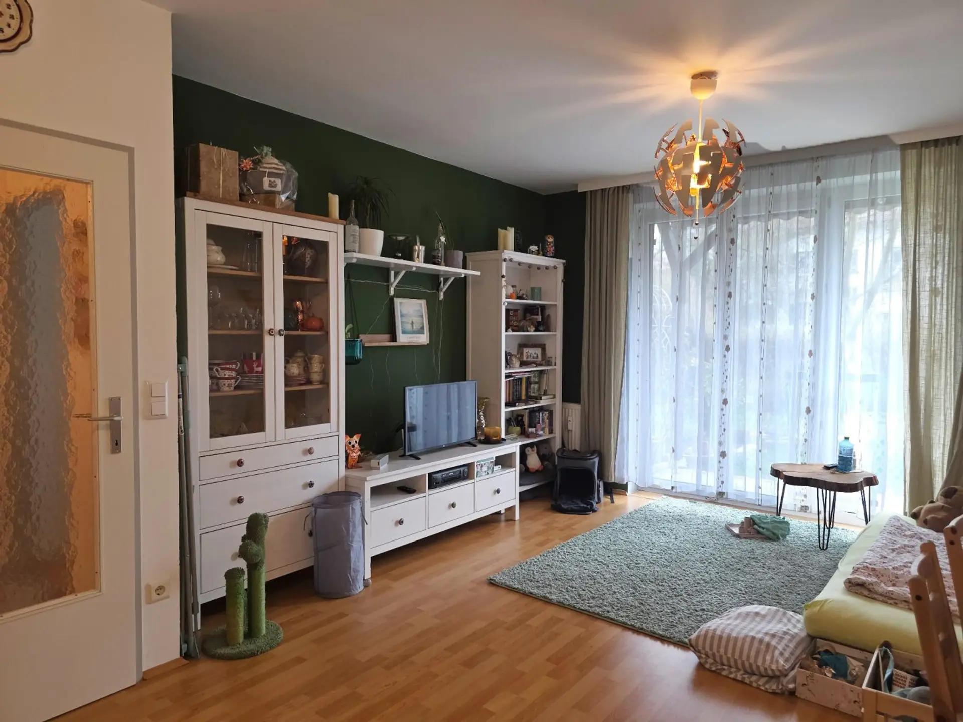 Die Wohnung verfügt über zwei Zimmer, einen großen Vorraum, Badezimmer, eine separate Toilette und einen Abstellraum. Insgesamt beträgt die Wohnfläche ca. 53,49m². Dazu kommt der Garten mit zirka 29m² Fläche mit einer überdachten, ca. 6m² großen Terrasse sowie ein praktisches Kellerabteil.
