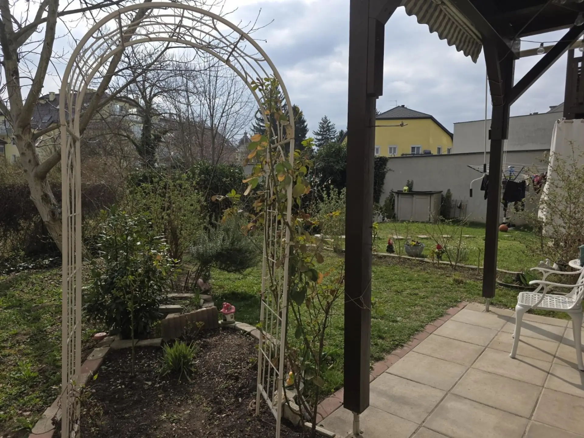 Trotz Garten ist die Wohnung nicht ganz barrierefrei (sechs Stufen), jedoch kann man bei Bedarf über die Tiefgarage mit dem Lift die Wohnung ohne Stufe erreichen. Die Wohnung befindet sich im hinteren Bereich der 1999 errichteten Wohnhausanlage, weit entfernt von der Hauptstraße. So können Sie fast ungestört auf Ihrer Terrasse Ihren Kaffee genießen, ein Sonnenbad auf einer Liege nehmen, Blumen bewundern, Gemüse aufziehen, im Whirlpool relaxen oder ausnahmsweise einmal nichts tun.