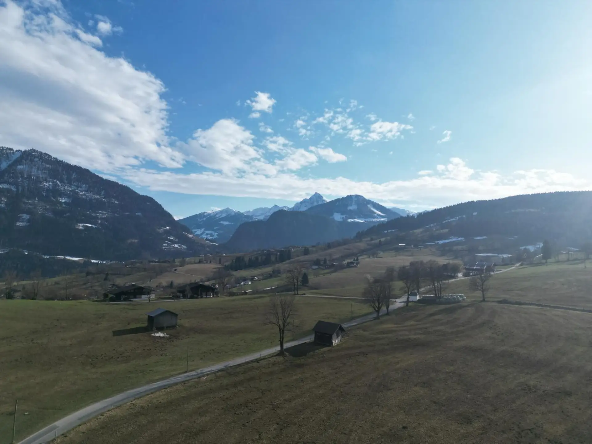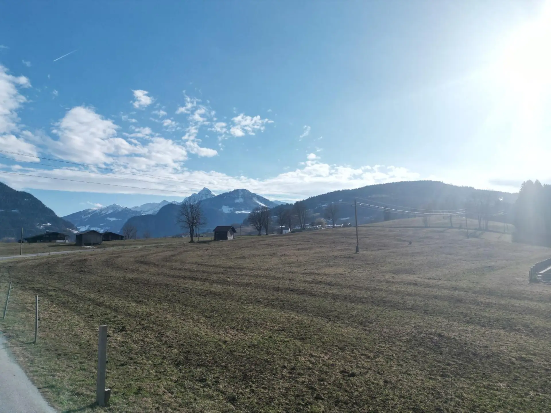 Die sonnige ebenes Grundstück sorgt für optimale Lichtverhältnisse über den gesamten Tag hinweg und eröffnet zugleich einen wunderschönen Ausblick auf die umliegende Bergwelt. Hier verschmelzen Natur und Wohnkomfort zu einem harmonischen Gesamtbild.