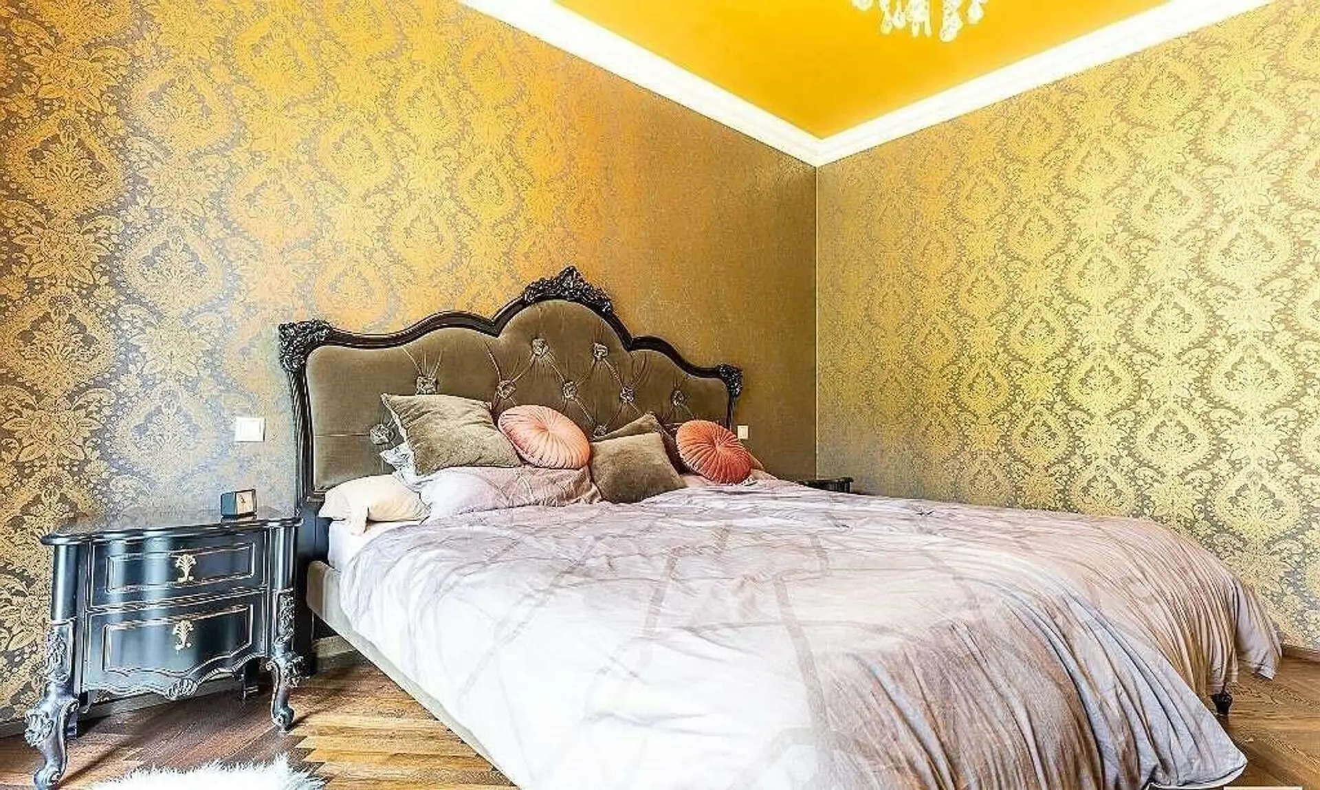 Weiter vorne ist ausreichend Platz für einen gediegenen Esstisch wo genüsslich diniert werden kann und der herrschaftliche Kristallluster sowie die indirekte Beleuchtung lassen Stimmung aufkommen. Die Doppelflügeltüren führen zum Garten mit 30 m² großer Terrasse und lassen auch den Sommer mit Grillplatz und Sonnenliegen zum Partyhighlight werden.