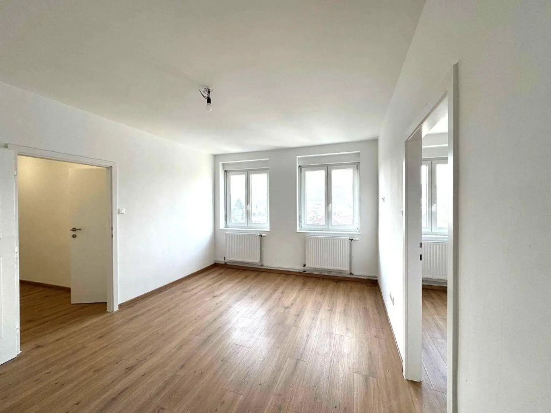 Die Wohnung befindet sich im 2. Stock eines gepflegten Wohnhauses aus dem Jahr 1972 und wird erstmals nach der Renovierung vermietet – ein echtes Plus für alle, die ein frisches, neues Wohngefühl schätzen.