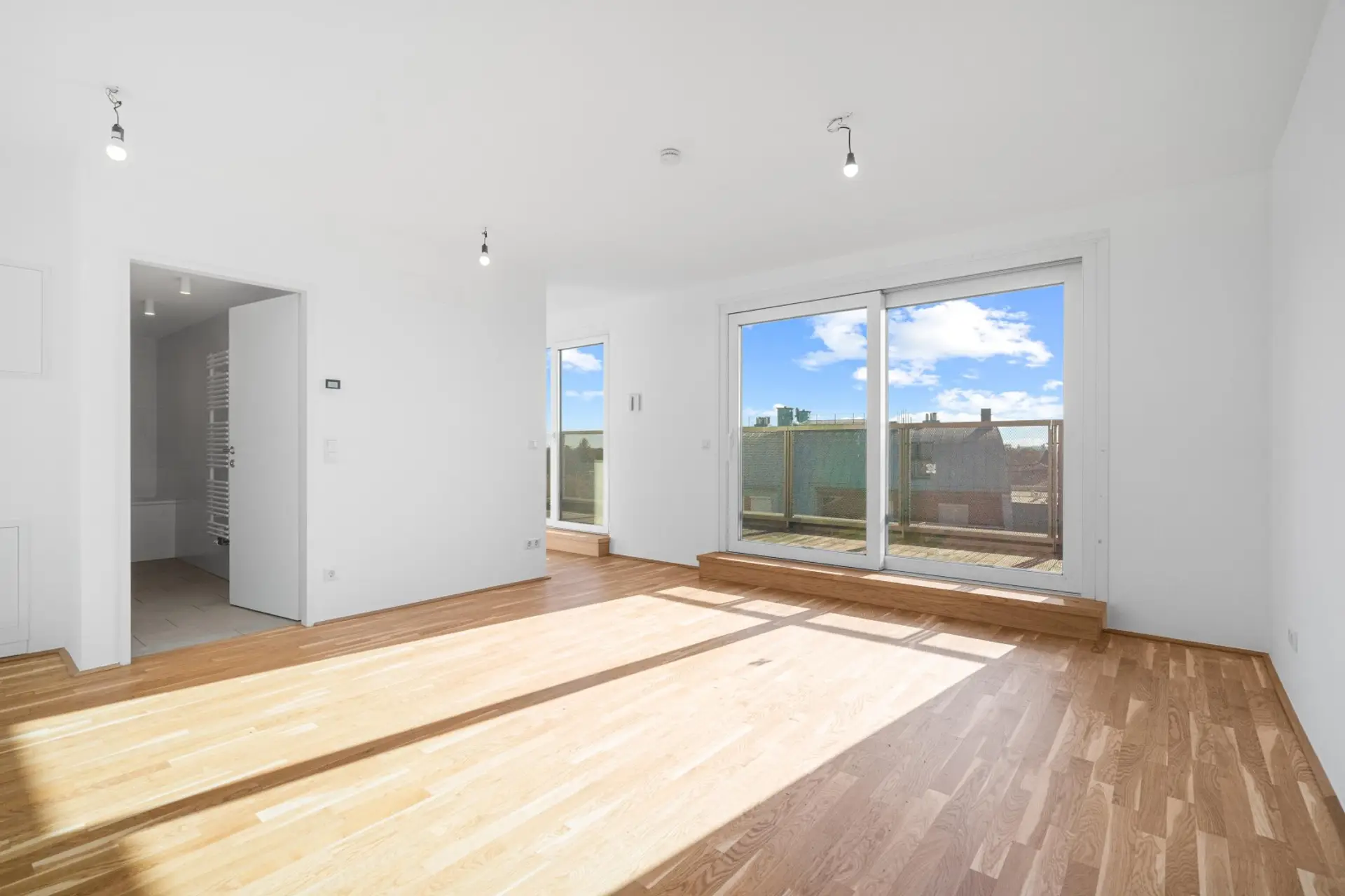 Diese helle 2-Zimmer-Wohnung mit einer Wohnfläche von ca. 49 m² zzgl. 26 m² Terrassenfläche befindet sich im 6. Liftstock eines modernen und gepflegten Wohnhauses in der Wagramer Straße – nur wenige Gehminuten von der U1-Station Kagran entfernt. Durch die hofseitige Ausrichtung ist die Wohnung angenehm ruhig und bietet ein entspanntes Wohnambiente.