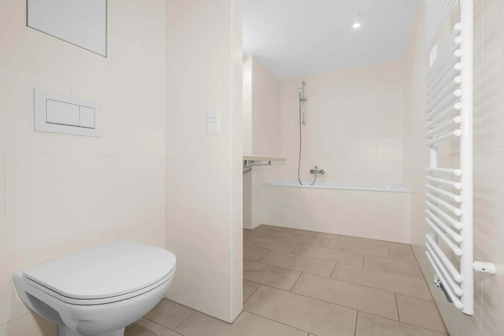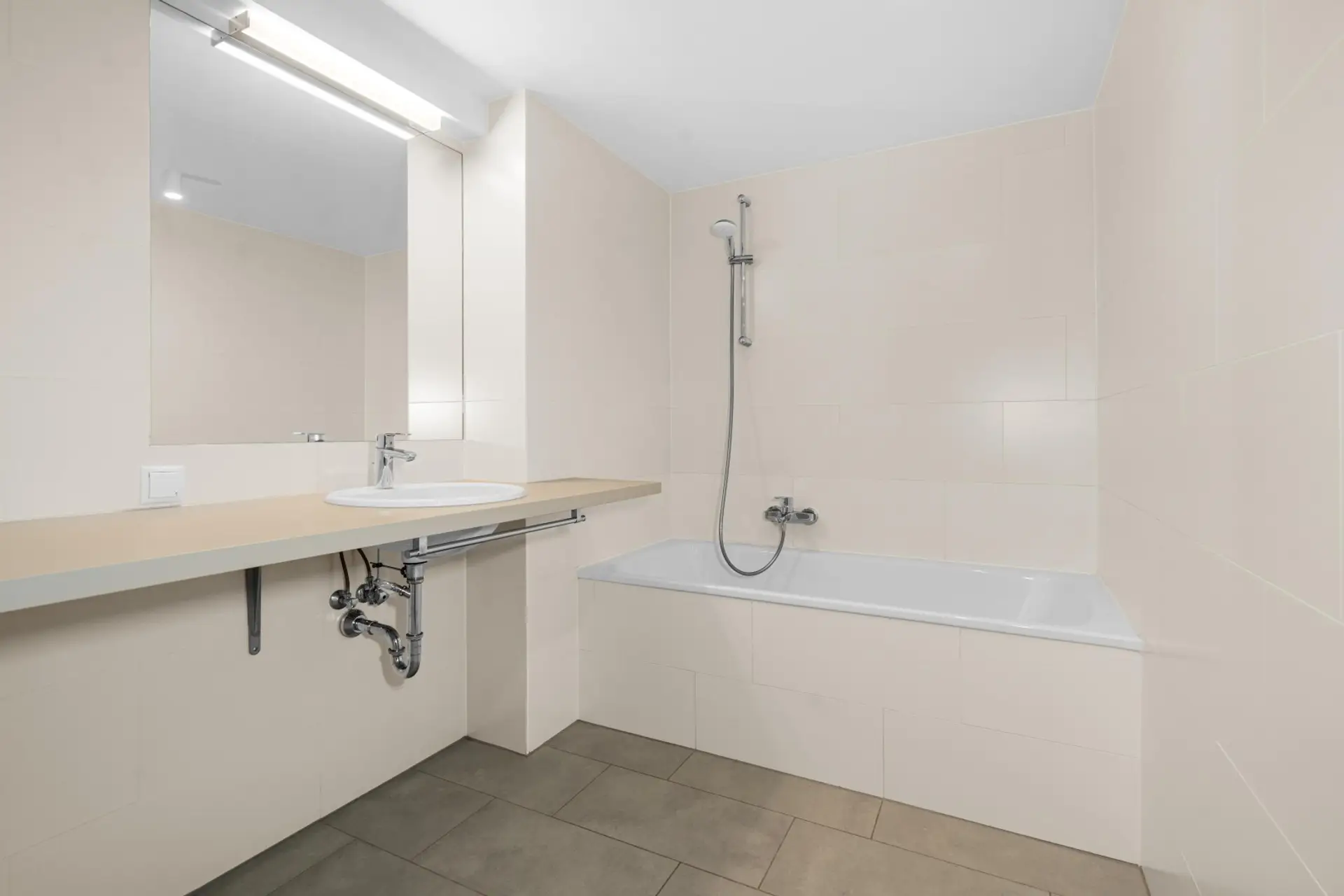 - Modern verfliestes Badezimmer mit Waschmaschinenanschluss