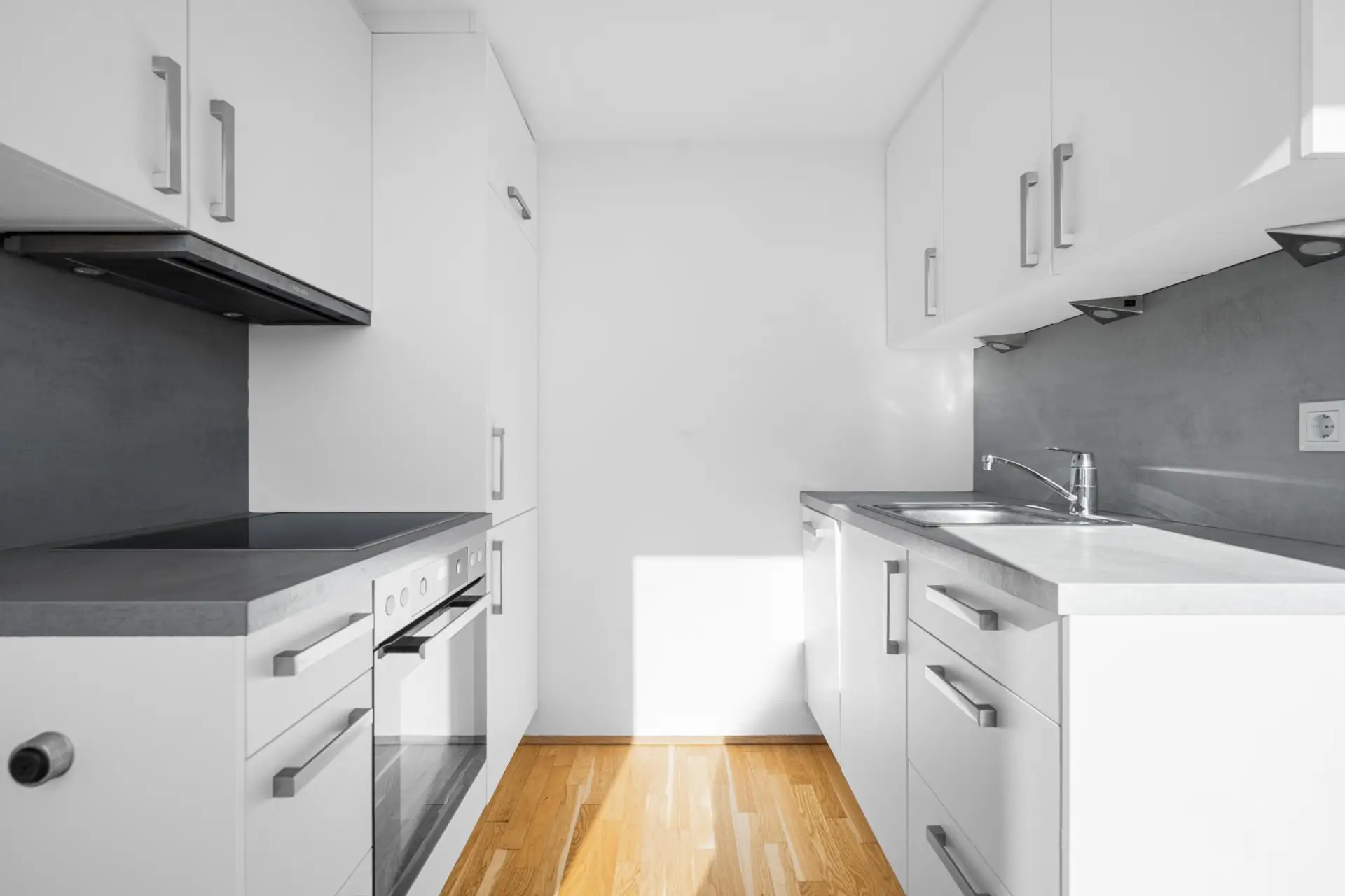 - Hochwertige Einbauküche mit Kochfeld, Backrohr, Geschirrspüler, Dunstabzug, Kühlschrank mit Gefrierfach