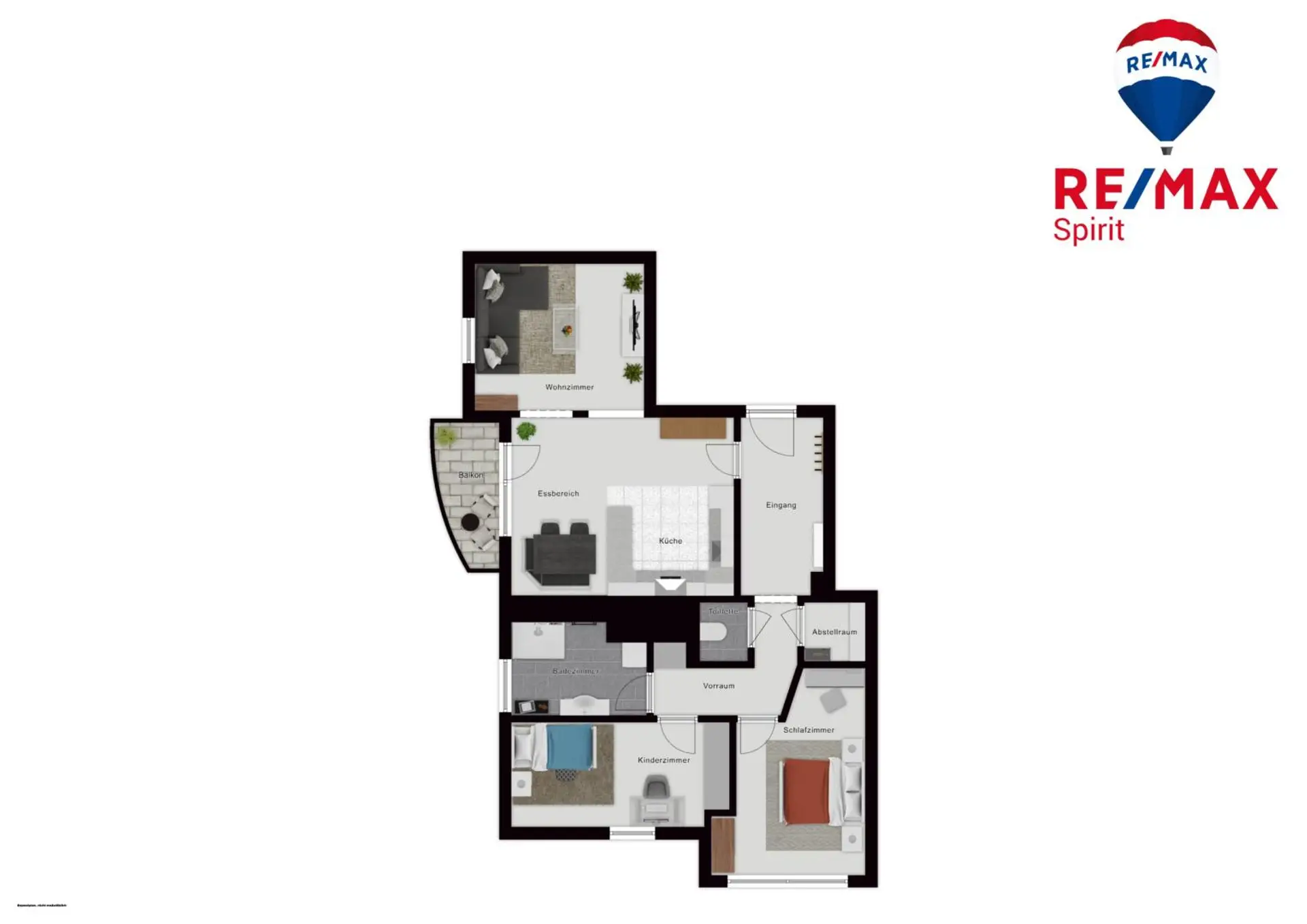 Vom einladenden Vorraum gelangen Sie in alle Bereiche der Wohnung: ein modernes Badezimmer mit Dusche, ein separates WC, ein gemütliches Schlafzimmer, ein weiteres Zimmer, das sich ideal als Kinderzimmer oder Homeoffice eignet, sowie den großzügigen Wohn- und Essbereich mit integrierter Küche. Hier öffnet sich auch der Zugang zum sonnigen Balkon, auf dem Sie entspannte Stunden genießen können.