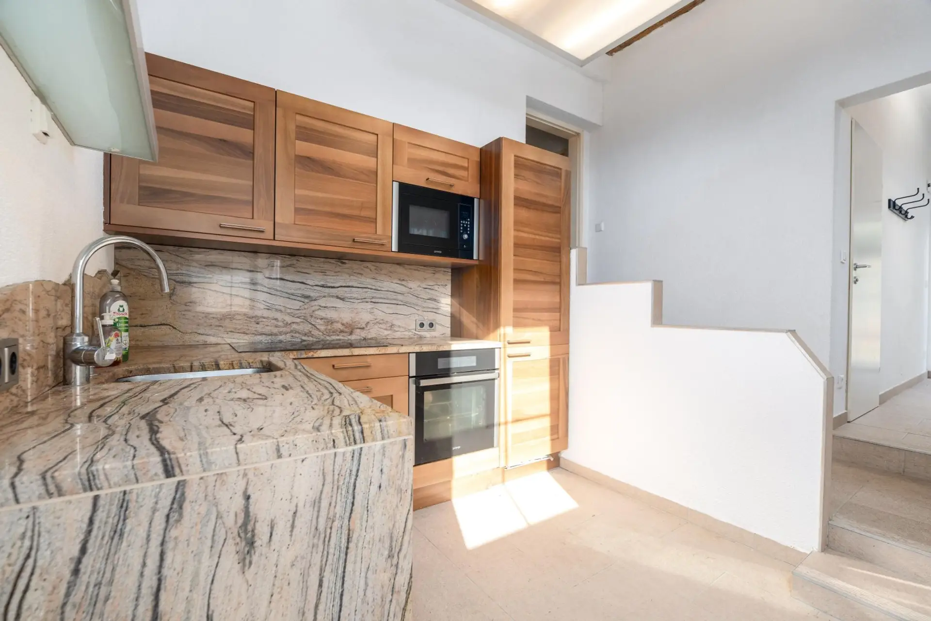 Küche: Voll ausgestattete Küche mit hochwertigen Naturstein-Arbeitsflächen, viel Stauraum und moderner Einbaugeräte.