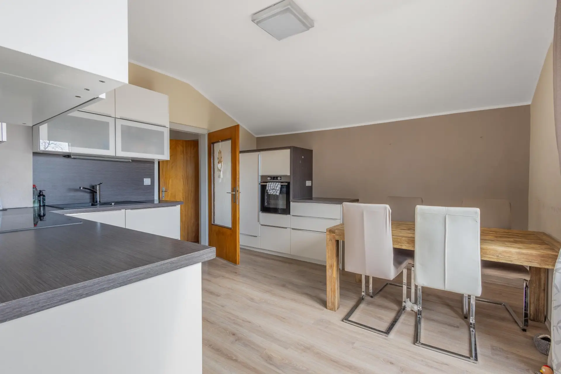 Das Obergeschoss ist aktuell vermietet (befristet bis 2028) und präsentiert sich in einem gepflegten Zustand. Damit bietet das Objekt auch eine interessante Investitionsmöglichkeit mit laufenden Mieteinnahmen.