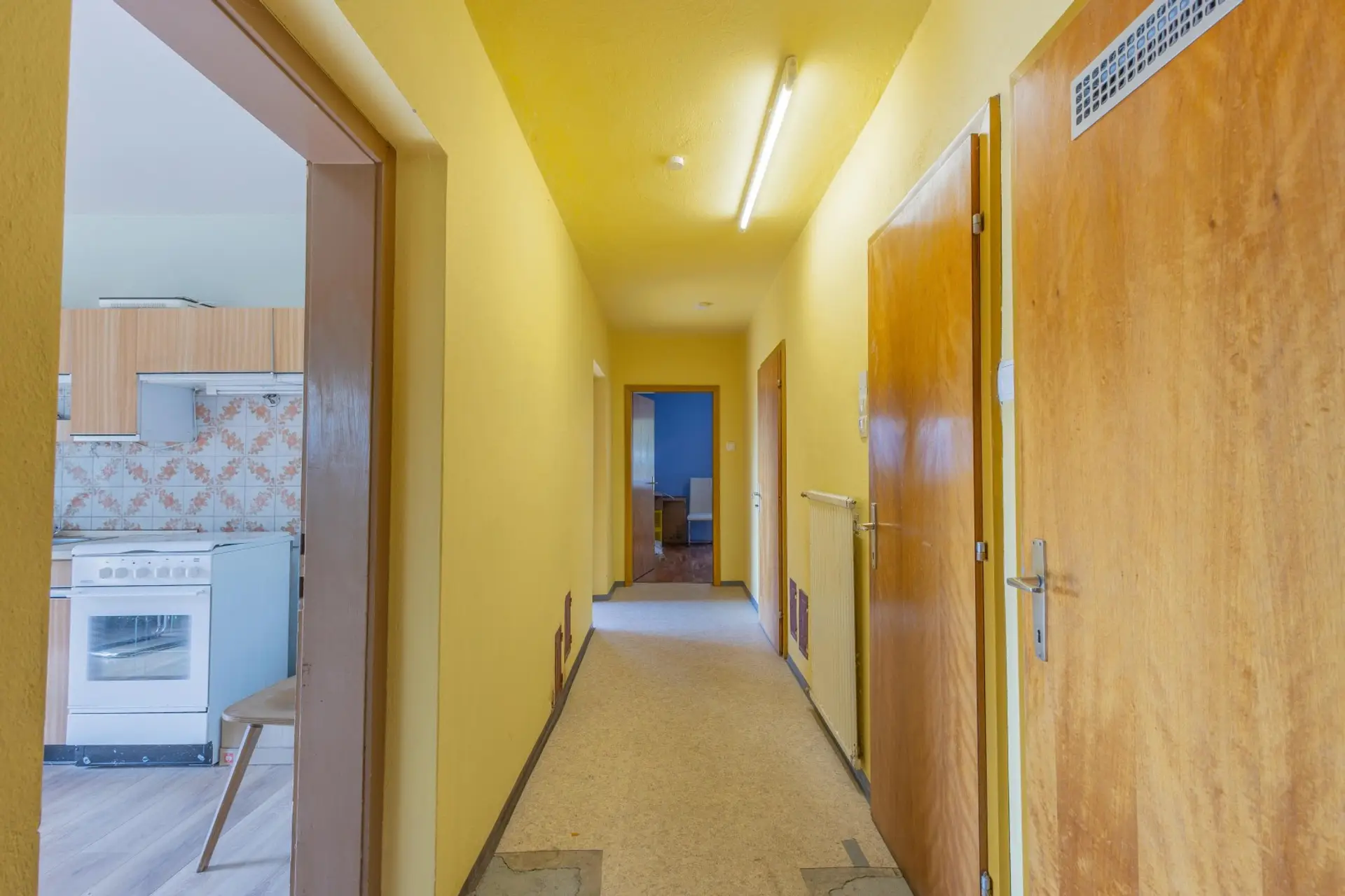 Im Erdgeschoss befindet sich der teilweise renovierungsbedürftige Bereich. Hier kann durch Modernisierungen, insbesondere im Badezimmer und Wohnbereich, neuer Glanz geschaffen werden. Ideal für kreative Köpfe, die ihren Wohntraum nach eigenen Vorstellungen verwirklichen möchten.