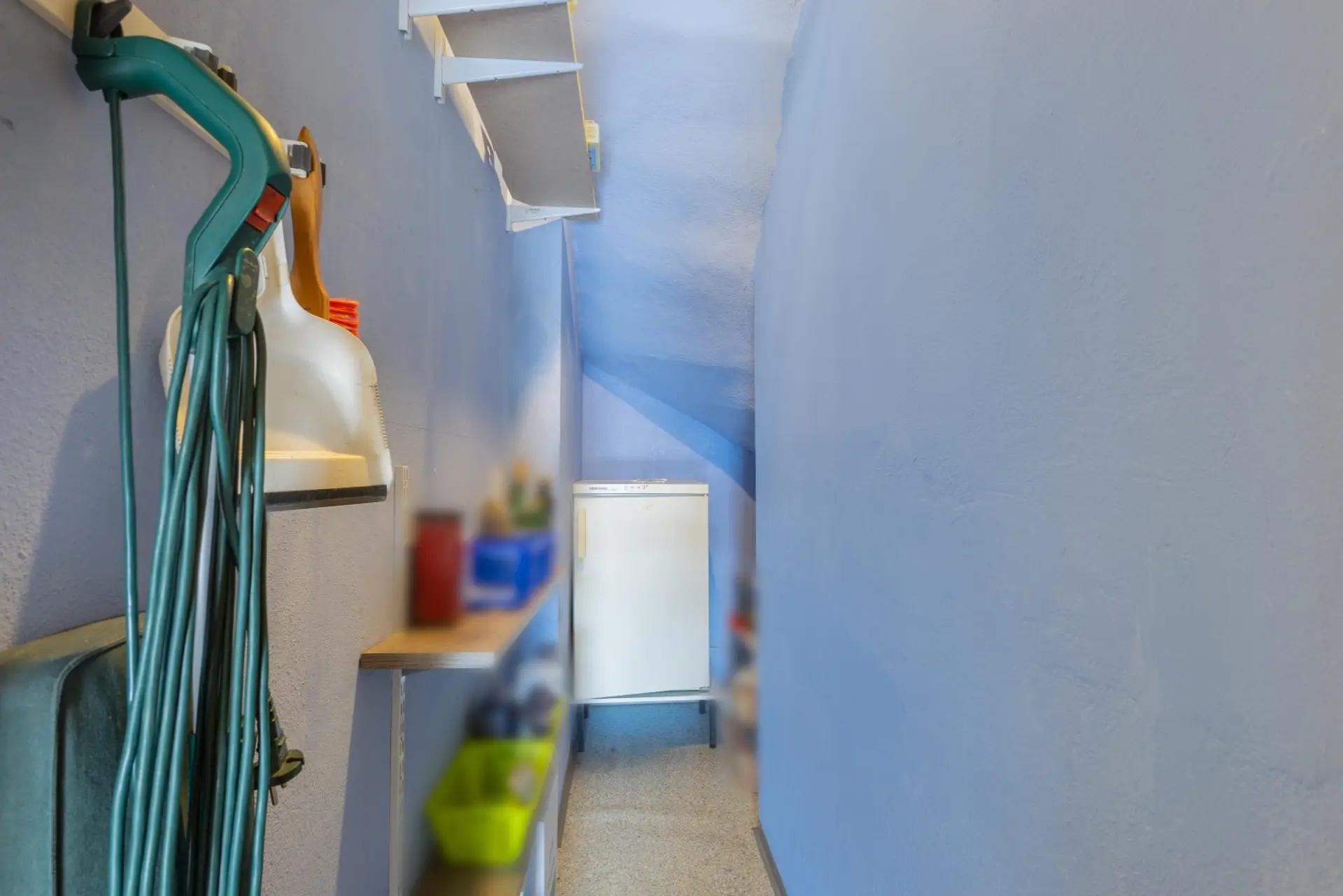 Das Haus erstreckt sich über zwei Ebenen sowie einen kleinen Bereich unter dem Haus und ein Dachboden, die zusätzlichen Stauraum bieten.