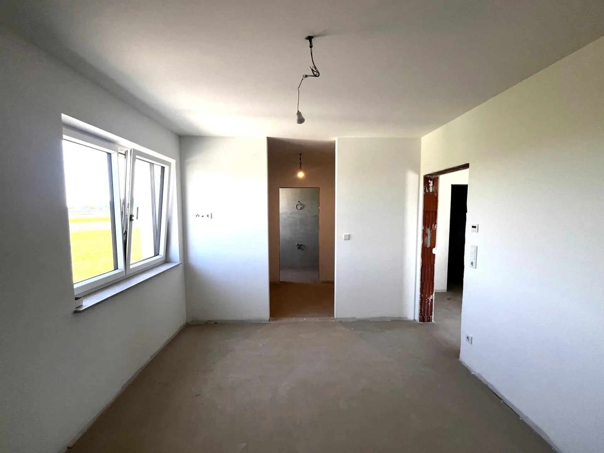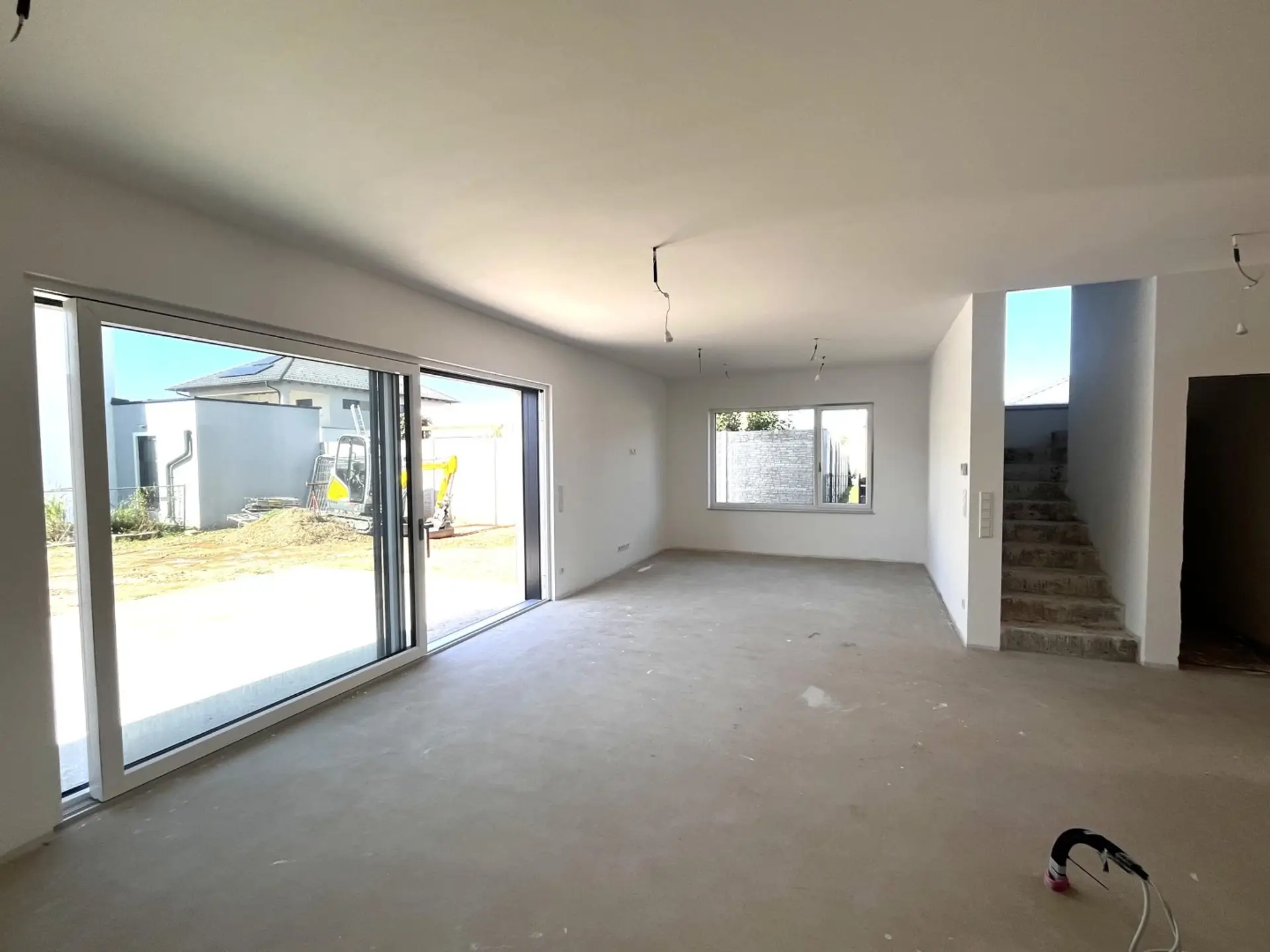 Dieses soeben fertiggestellte Haus wartet mit großzügigen 146m² Wohnfläche auf seine ersten Bewohner! Helle Räume, durchdachte Architektur und Ausstattung auf modernstem Standard lassen keine Wünsche offen. Das Haus wird belagsfertig übergeben. Das Grundstück umfasst ca. 390 m² und liegt am Rande der Ortschaft in einer neuen ruhigen Siedlungslage am Rande der Ortschaft und den Feldern. – ein idealer Ort für Familien und Menschen, die Wohnen mit Wohlfühlcharakter schätzen.