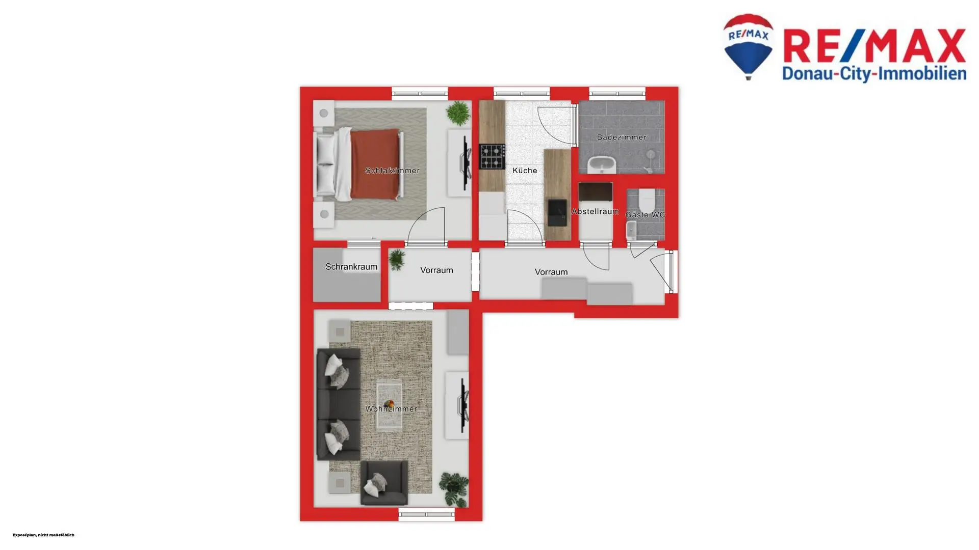 Diese 2 Zimmer-Wohnung liegt im Innenhof (Gemeinschaftsgarten), direkt im Ortszentrum von Laxenburg.