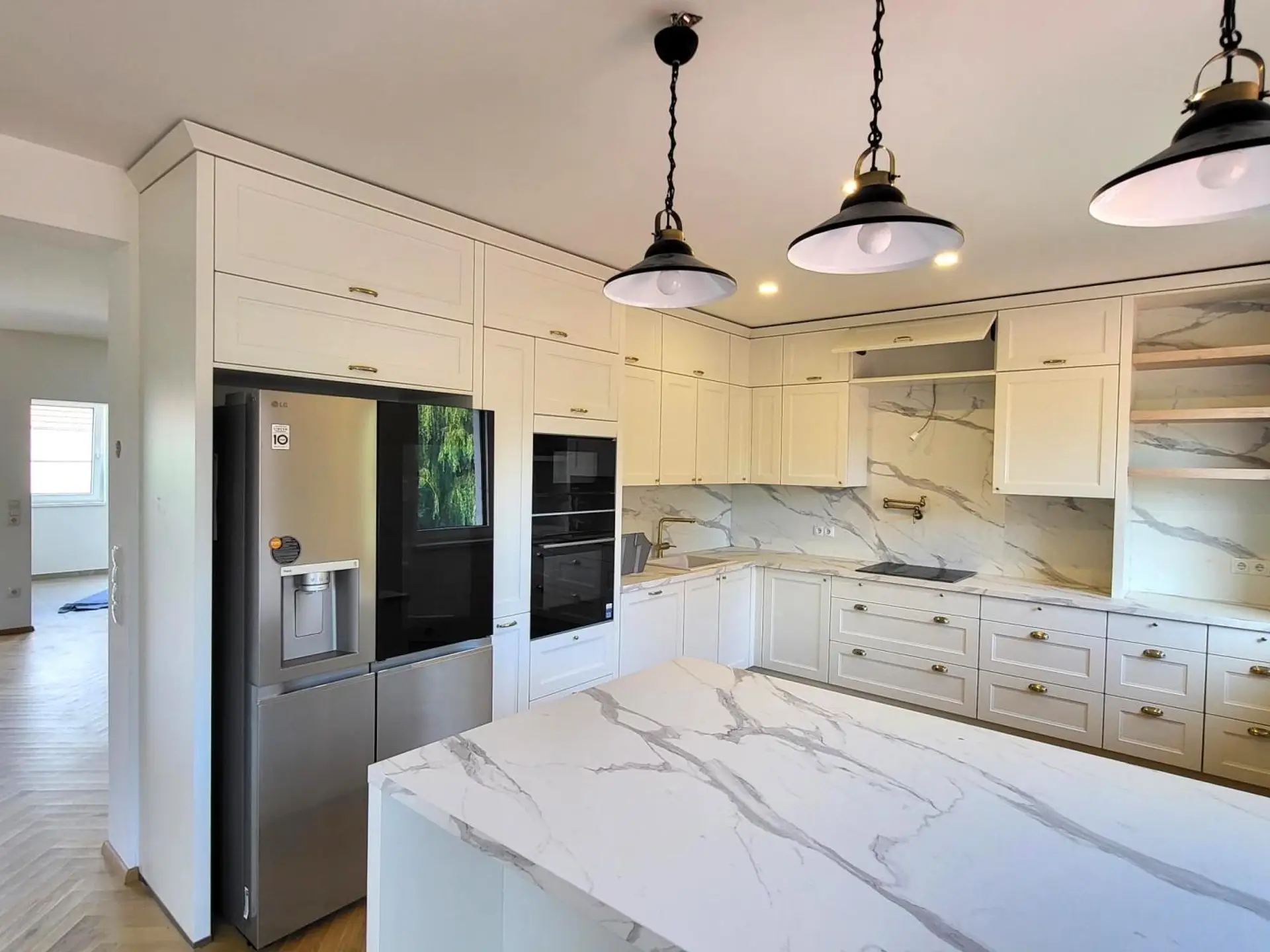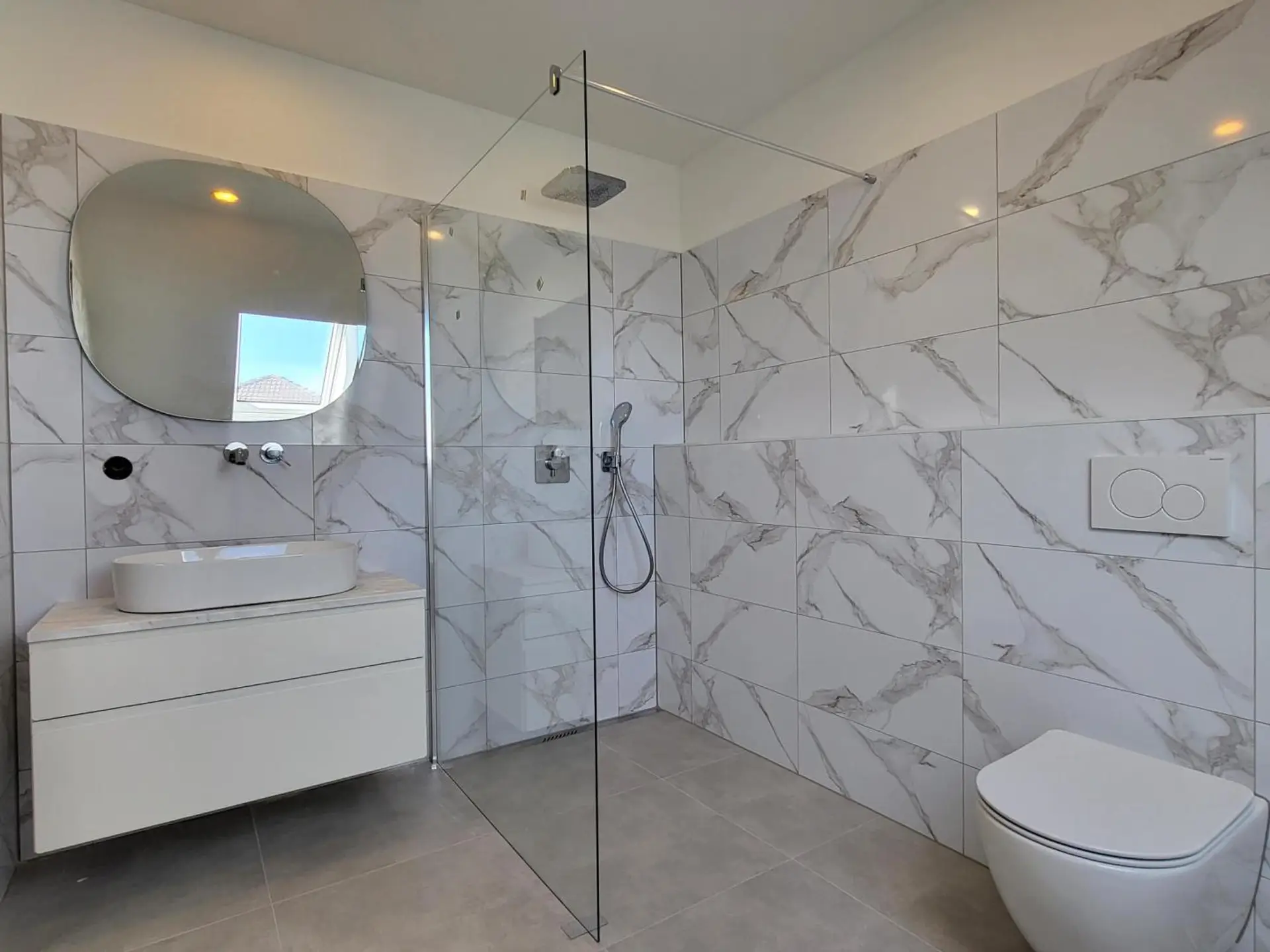 AUSSTATTUNG: Ziegelmassivbauweise mit Wärmedämmung, Bramac-Dach, Vaillant-Luftwärmepumpe mit Fußbodenheizung, Klimageräten in den Wohnräumen, Internorm 3-fach Kunststoff-Isolierglasfenster mit steuerbarer Außenbeschattung, Vinyl-, Fliesen- bzw. Parkettböden, Einbauküche mit Markengeräten, luxuriöse Bad- und Sanitärausstattung.