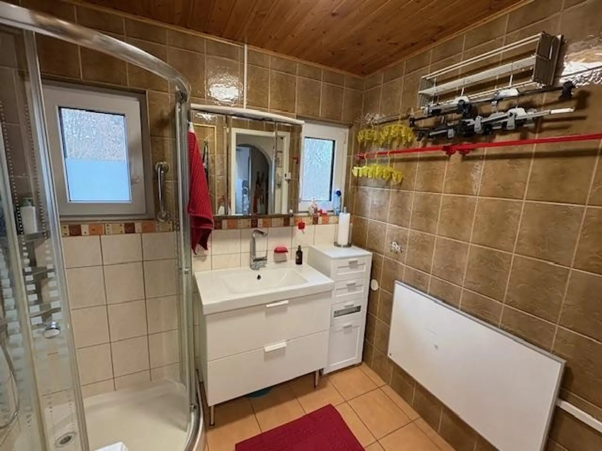 Im Erdgeschoss befinden sich einige Lagerräume, die Haustechnik, die Werkstatt, eine überdachte Laube, ein Bad mit Dusche, WC und Waschmaschinenanschluss. Der Eingang ins Obergeschoß ist von der Ostseite mit einer überdachten Stiege zu erreichen. Zusätzlich gibt es einen Sitz Lift. Im Haus werden Sie mit sehr hellen Räumen überrascht. Viele Fenster mit außen Jalousien, viele Beleuchtungen und vor allem der Luxus einer Fußbodenheizung. Alles funktioniert elektrisch und zusätzlich gibt es 2 Kamine.