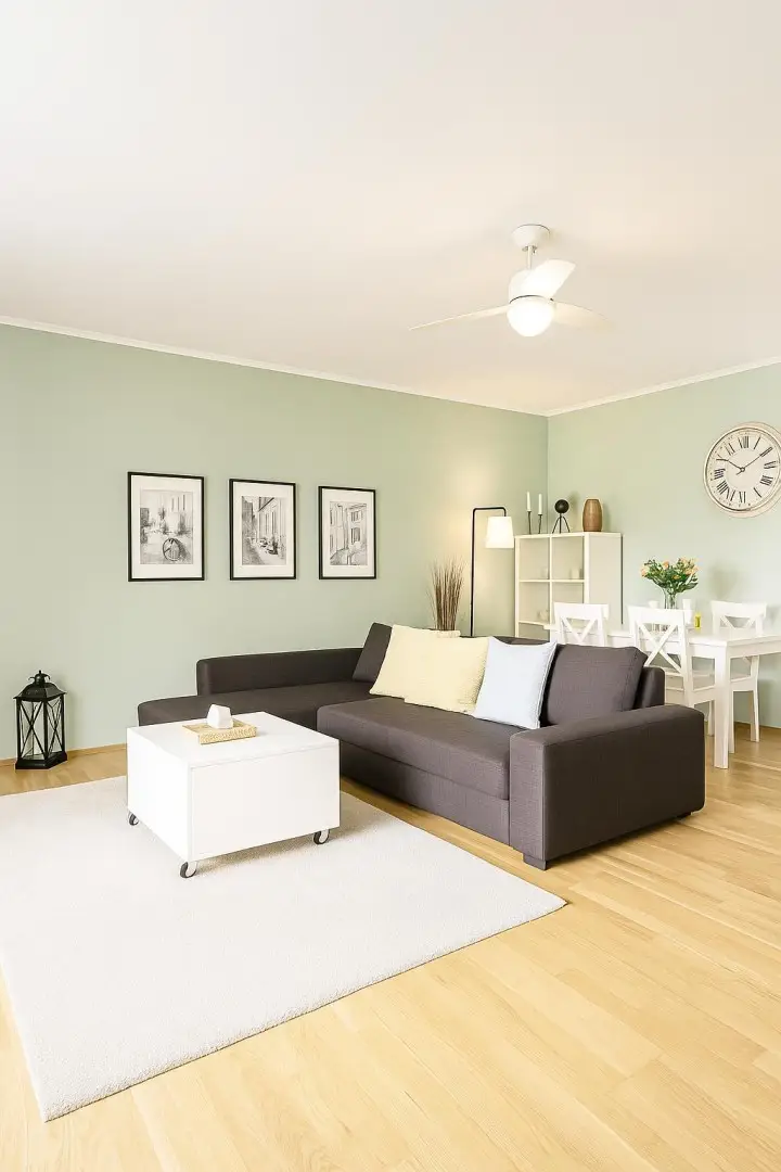 Der Weg führt weiter in das große, helle Wohnzimmer (26,32 m²) – das Herzstück der Wohnung. Die offene, freundliche Atmosphäre sowie der direkte Zugang zum Balkon (4,42 m²) schaffen ein sofortiges Wohlfühlambiente. Die Küche (8,16 m²) ist separat begehbar, hell, gepflegt und in einem sehr guten Zustand – perfekt für den Alltag.