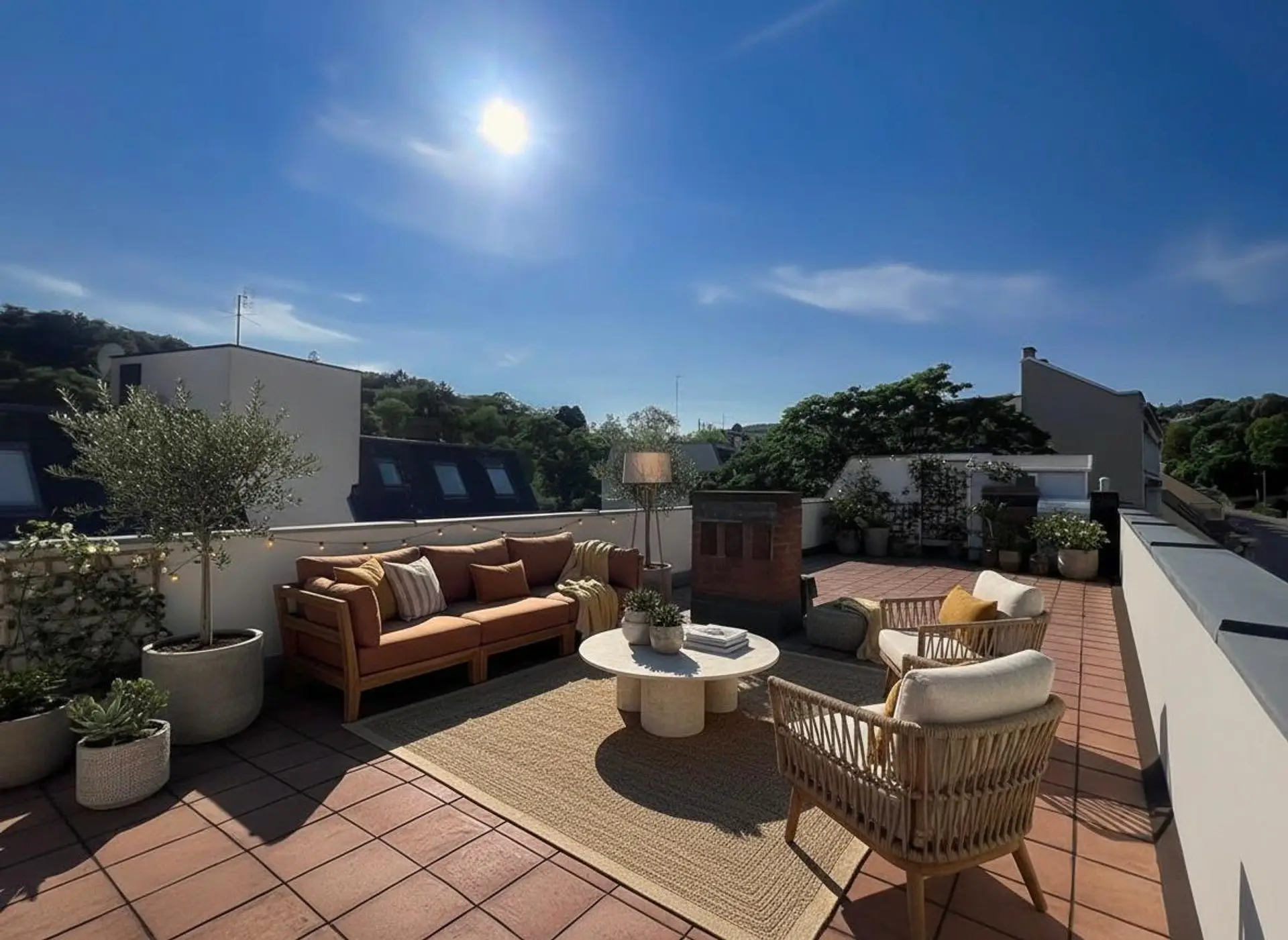 • Großzügiges Wohnzimmer mit Zugang zum ca. 11 m² Balkon, Klimaanlage, zusätzlich mit Innenjalousien/ elektrische Sonnenmarkise und einen Kamin für den ganzjährigen Komfort