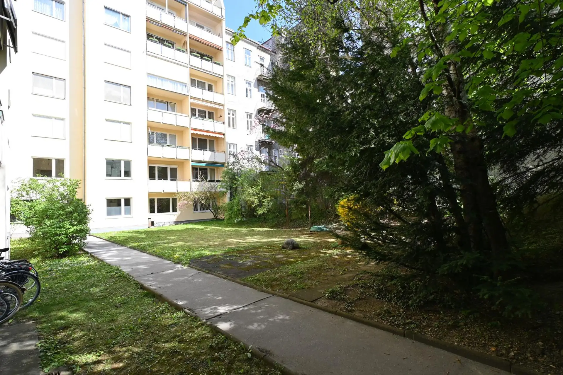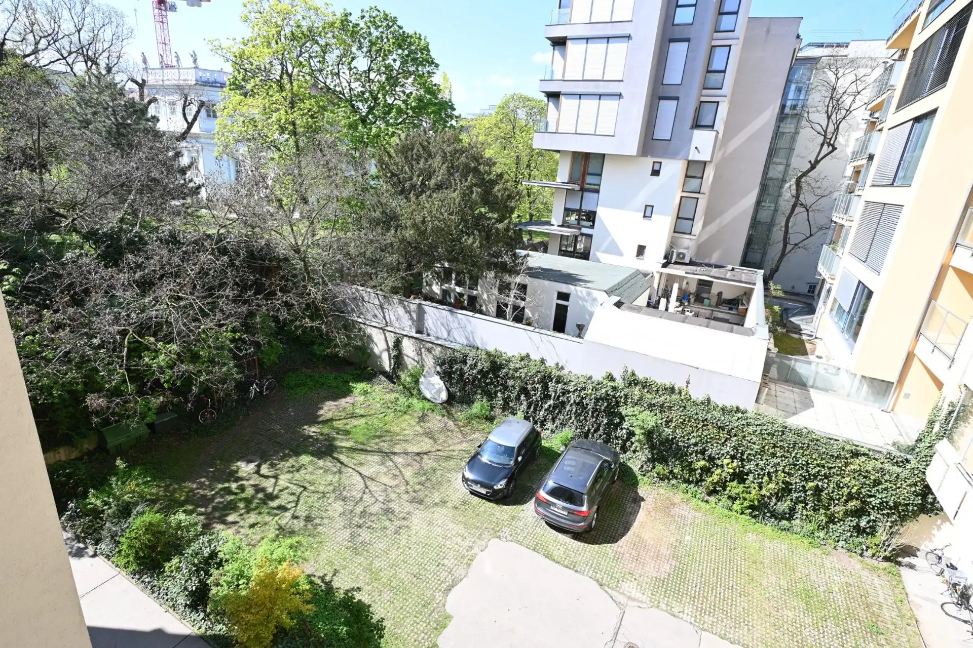 Sämtliche Fenster sind in den ruhigen, grünen und weitläufigen Innenhof ausgerichtet, der direkt an den großen Park des benachbarten Palais Schönburg angrenzt. Die Fenster sind neu und 3-fach verglast. Die Wohnung verfügt über eine Sicherheitstür und ein Kellerabteil gehört ebenfalls zur Ausstattung. Im Innenhof gibt es einen schönen großen Gemeinschaftsgarten mit Sitzgelegenheiten. Abstellmöglichkeiten für Fahrräder gibt es sowohl in einem kleinen Raum im Erdgeschoss sowie auch im Innenhof.