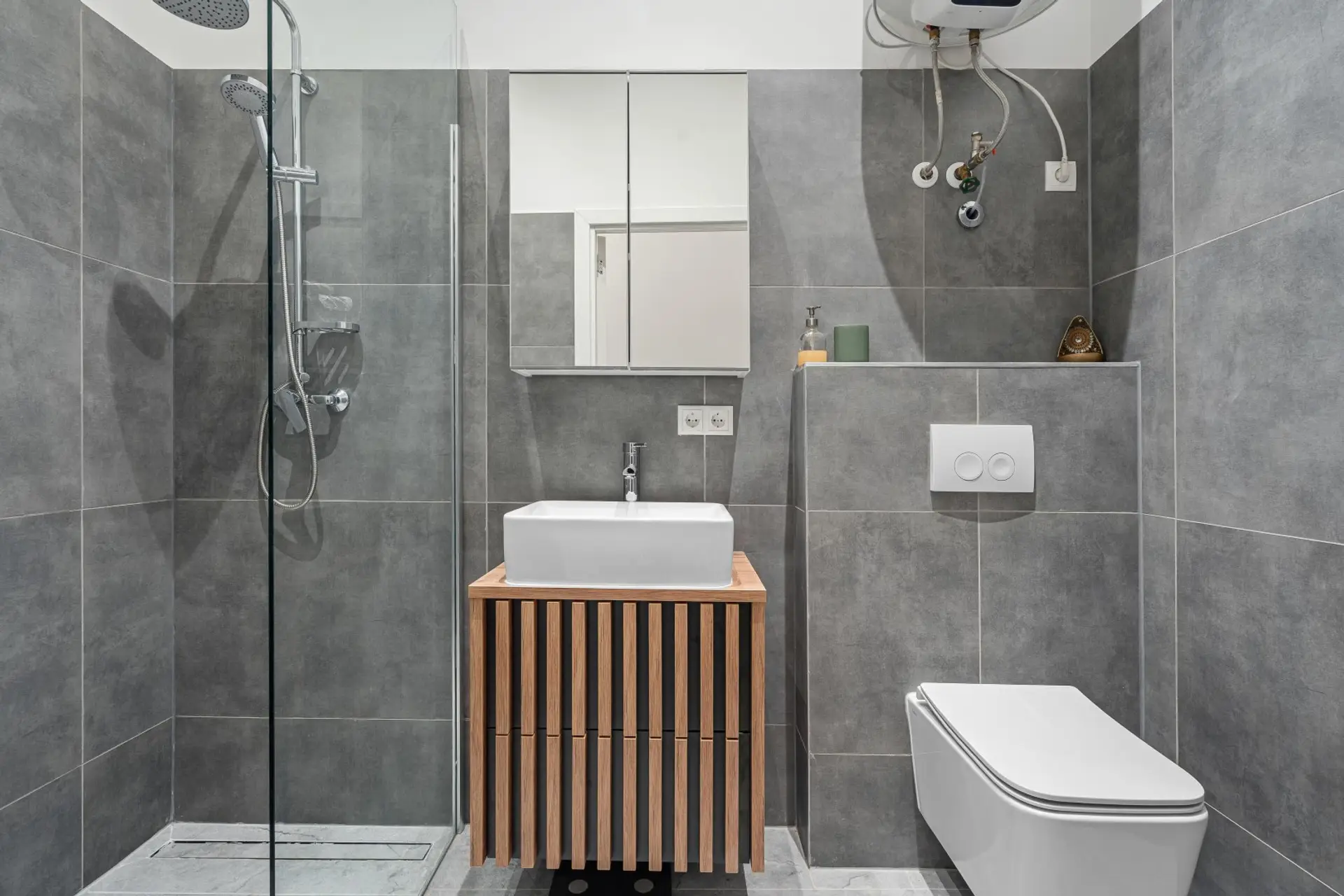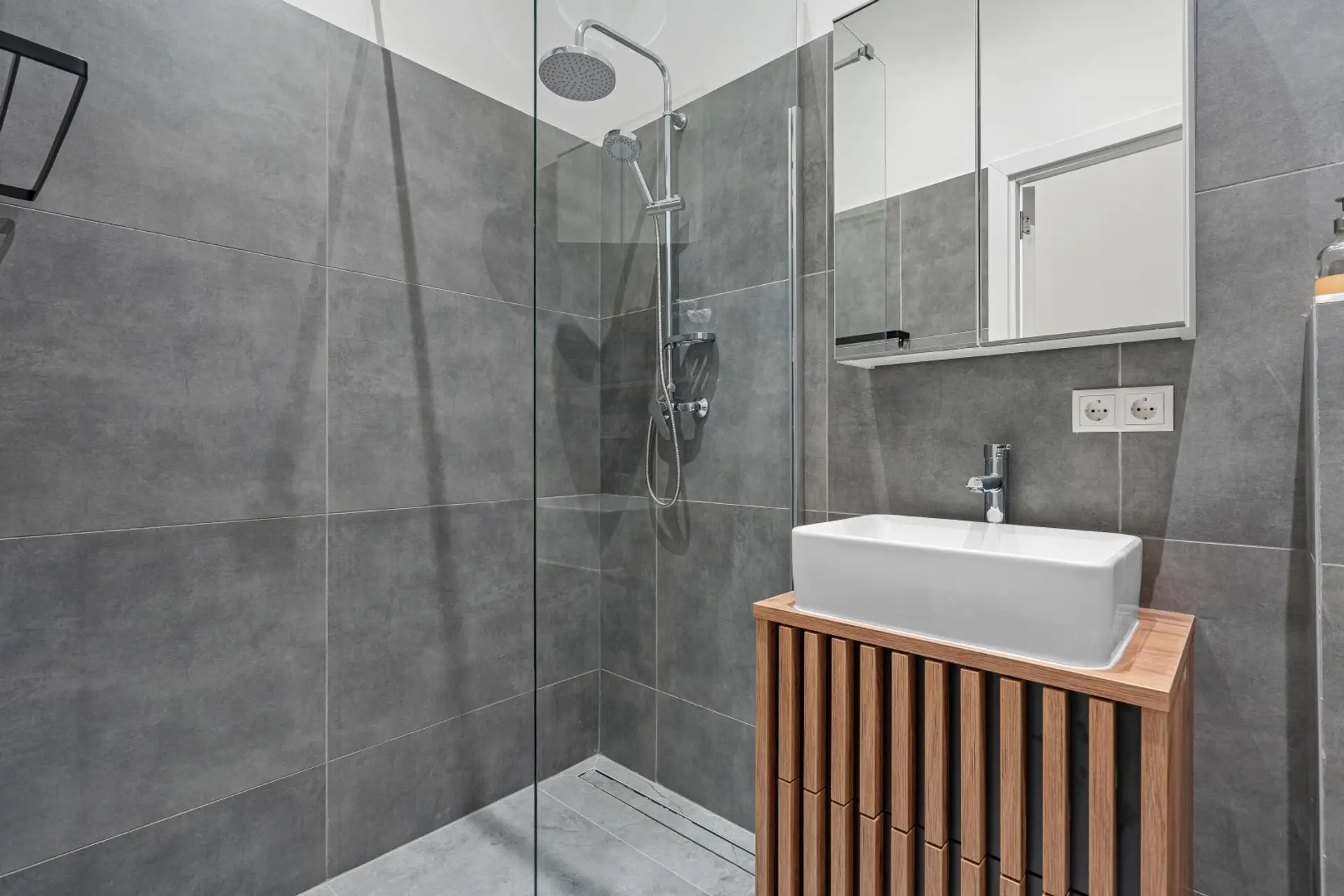 stilvolles Badezimmer mit Regendusche