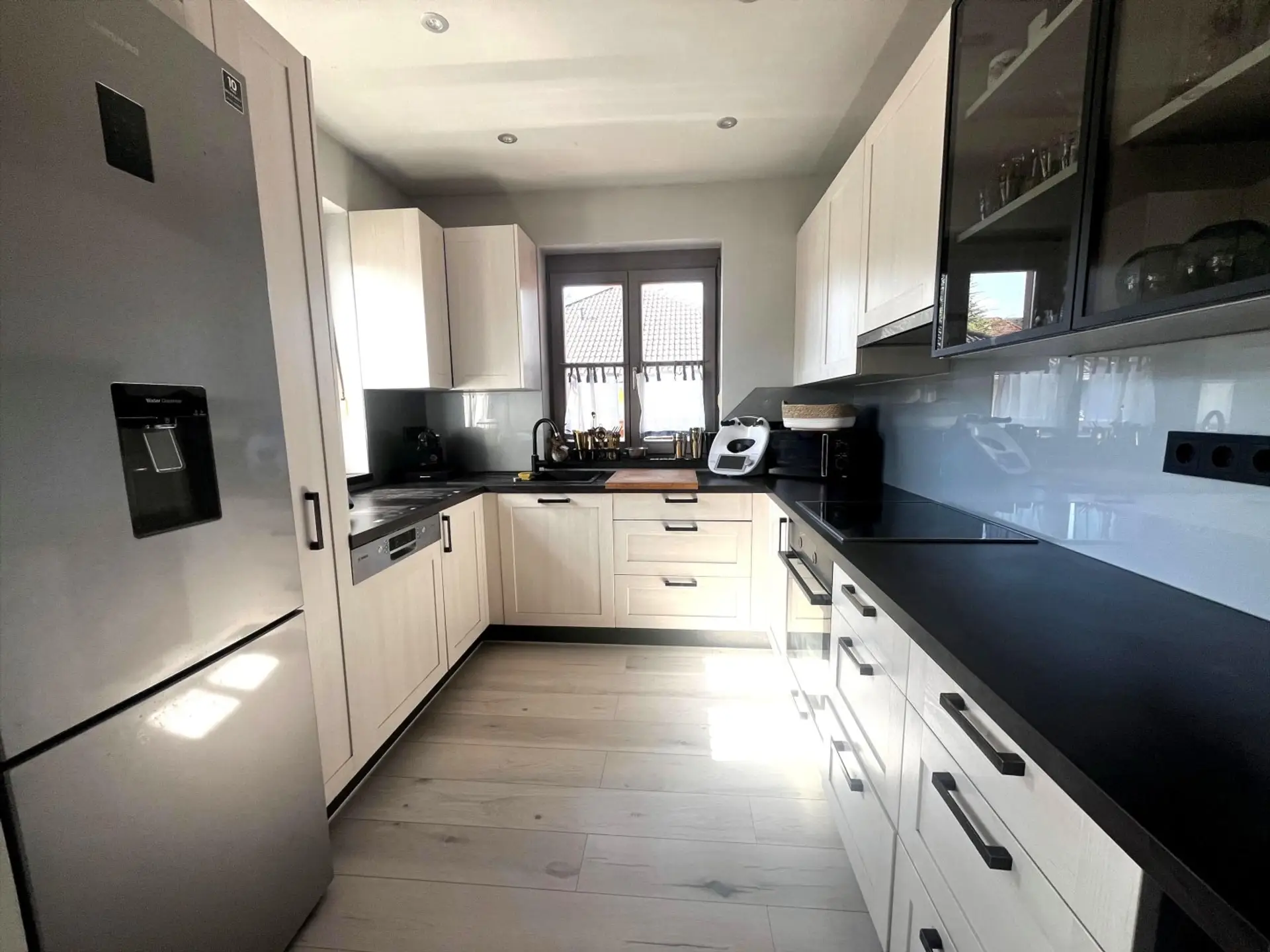 Im Erdgeschoss gelangen Sie über den zentralen Eingangsbereich in die Garderobe, ein Gäste-WC sowie in das großzügige, offene Wohnzimmer mit direktem Zugang auf die Terrasse und in den Garten. Ein moderner Kamin sorgt hier für eine behagliche Atmosphäre und wohlige Wärme an kühleren Tagen. Die funktional ausgestattete, offene Küche mit Blick in den Garten ist geschickt integriert und bietet eine angenehme Trennung zum Wohnraum. Zusätzlich erweitert ein gemütlicher Wintergarten den Wohnbereich und sorgt für noch mehr Licht und Weite.