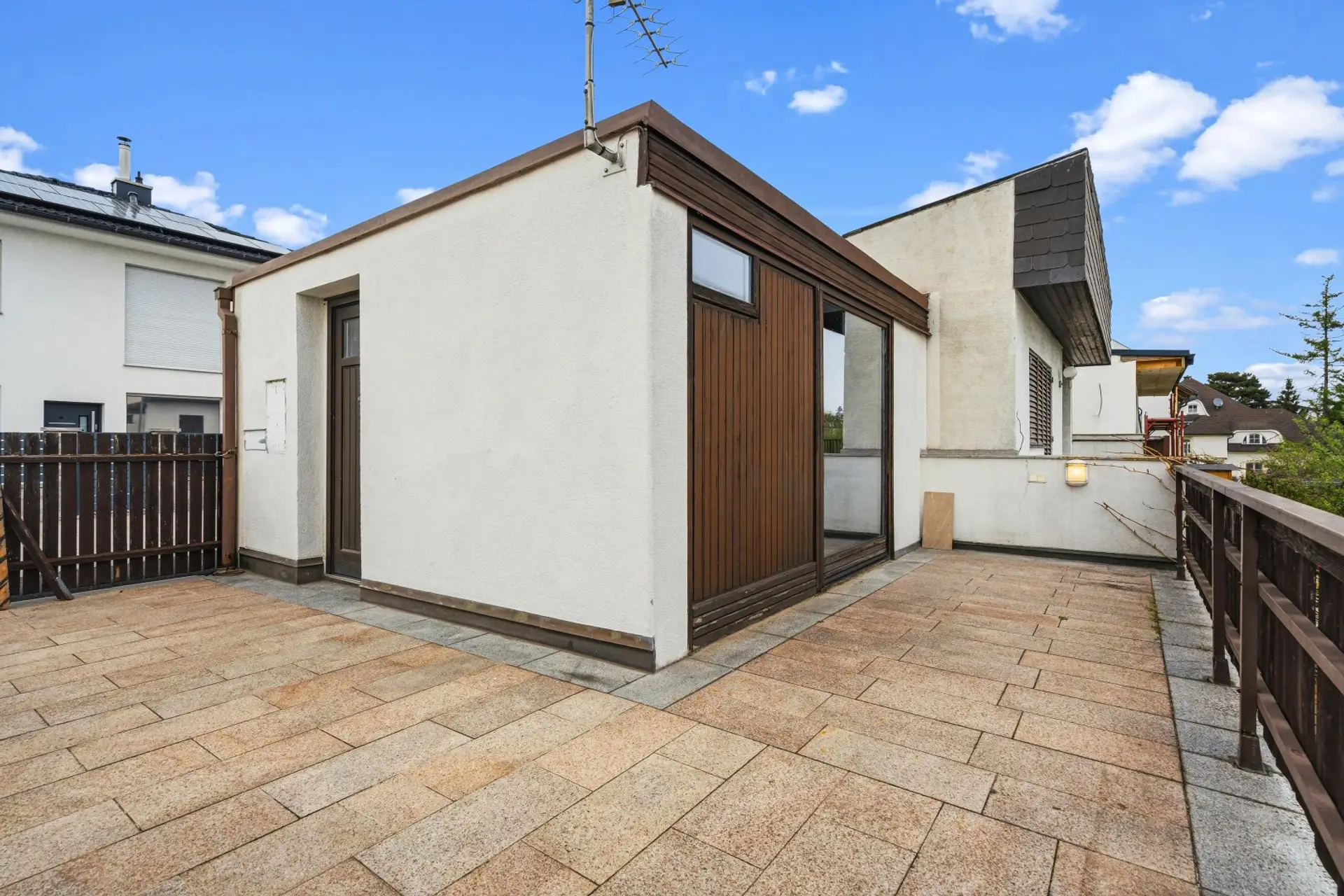 Eine Treppe führt ins UG zum Schlafzimmer mit direktem Ausgang zur Terrasse und zum Garten und Steg für Sprung in`s kühle Nass.