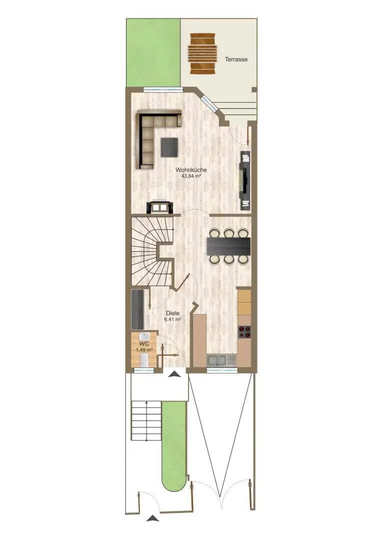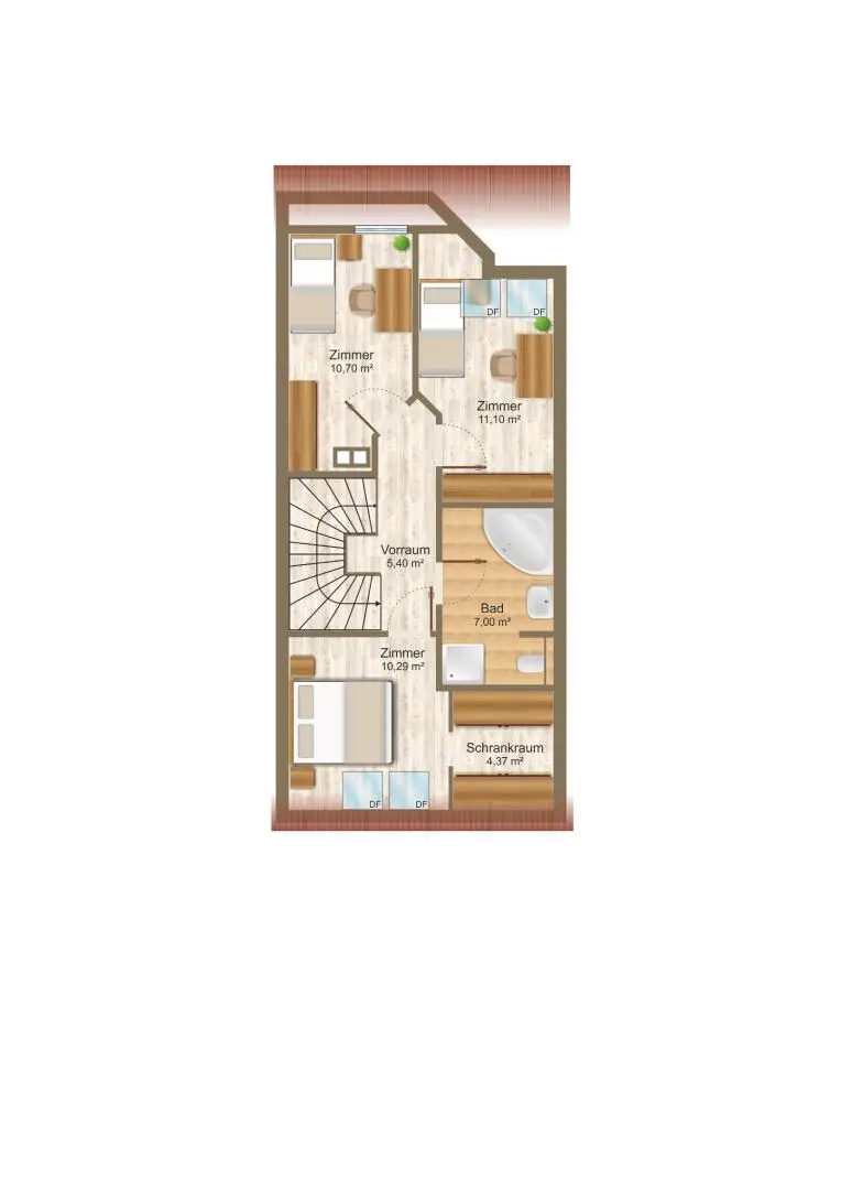 Das Haus überzeugt durch eine durchdachte Raumaufteilung mit Schrankraum und zentraler Begehbarkeit.