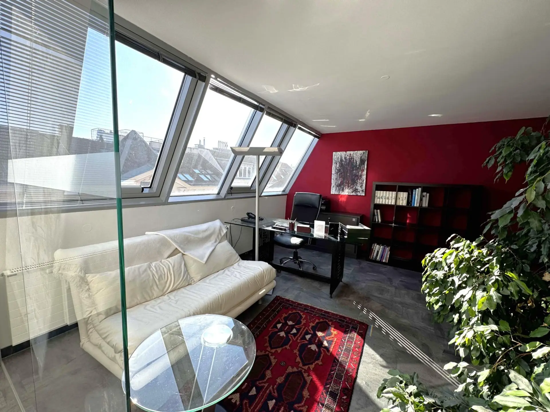 Das rund 166 m² große Penthouse befindet sich im obersten Stock eines klassisch-eleganten Wiener Altbaus, der 2007 umfassend und stilvoll saniert wurde. Die Kombination aus historischem Charme und moderner Raffinesse schafft ein Ambiente, das sowohl zeitlos als auch avantgardistisch wirkt.
