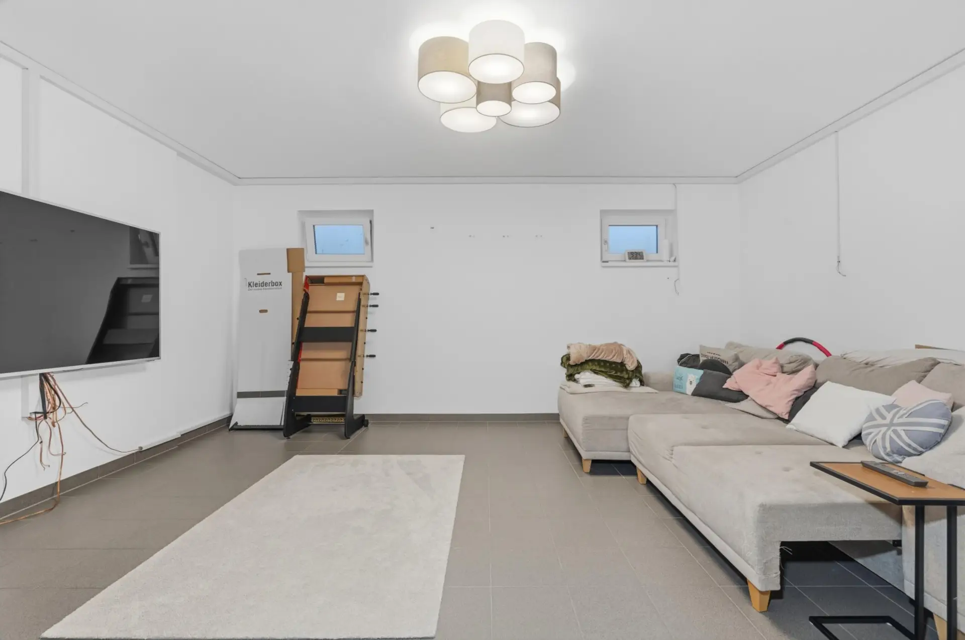 Das Badezimmer präsentiert sich hell und freundlich und bietet mit Dusche und Badewanne den passenden Rahmen für Komfort und Wohlbefinden – ideal für den Alltag wie auch für entspannte Momente. Ergänzt wird das Angebot durch einen funktionellen Kellerbereich, der weit über klassischen Stauraum hinausgeht. Ob Fitnessraum, Heimkino oder persönlicher Rückzugsort – hier entsteht zusätzlicher Platz, der den Alltag sinnvoll erweitert.