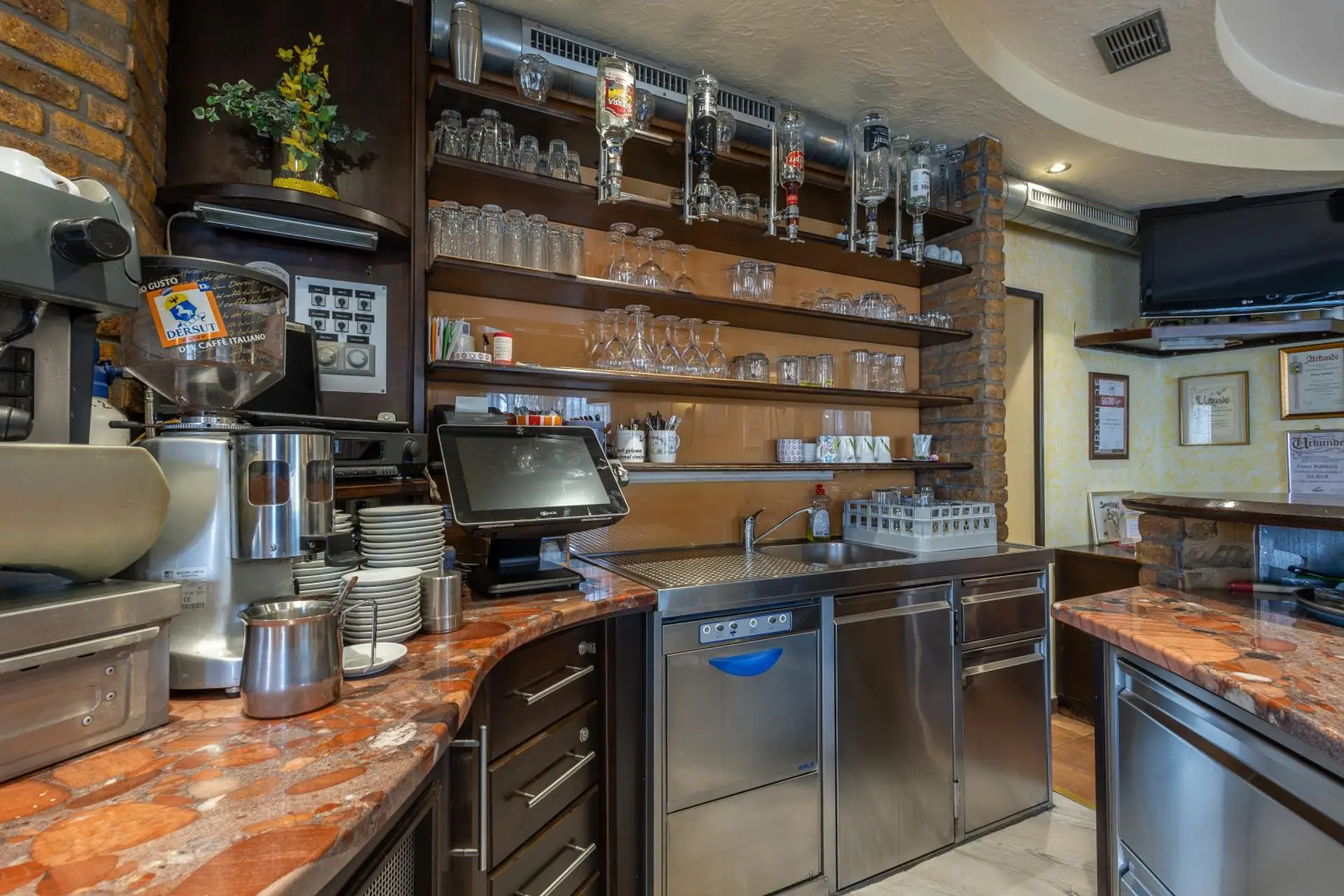 * großer Thekenbereich mit modernere Theke
