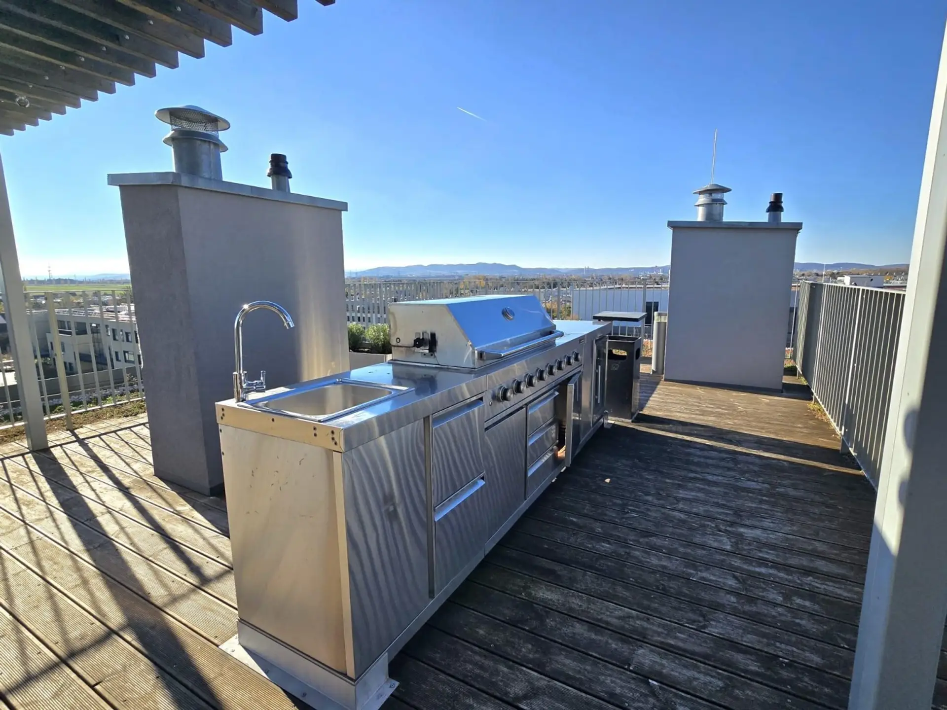 Highlights: Gemeinschaftsdachterrasse mit Grill und Sonnenliegen samt traumhaftem Blick über Wien, Spielplatz, Volleyballplatz, Schule & Kindergarten in der Anlage. Nur 5 Gehminuten zur U1 Oberlaa und Therme Wien.