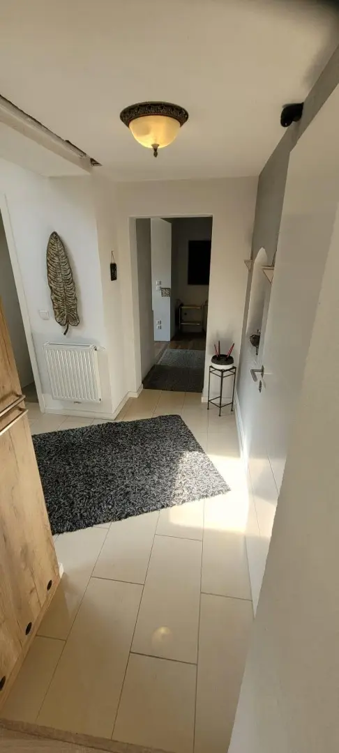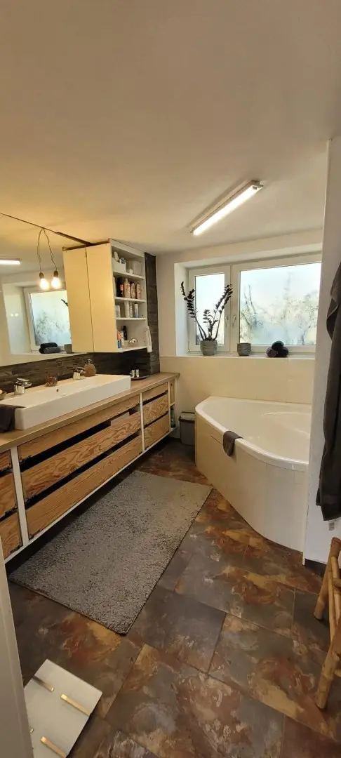 Das Badezimmer ist mit Badewanne und Waschbecken ausgestattet. Das WC ist zentral erreichbar.