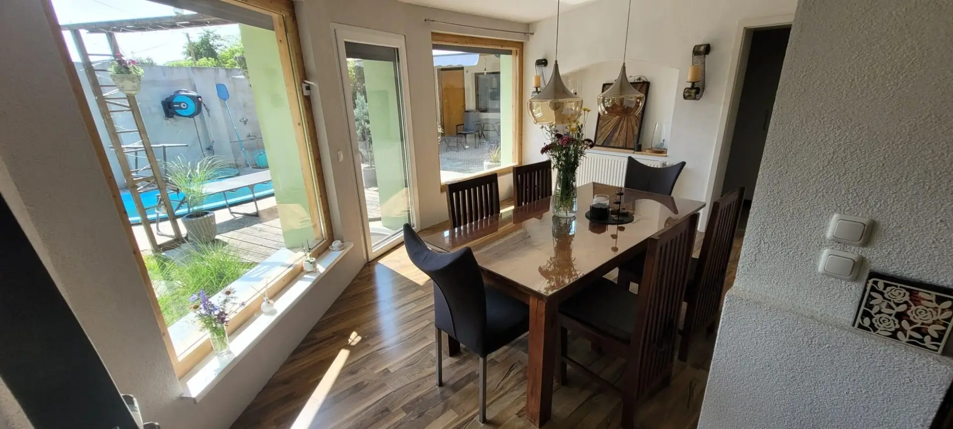 Ein Highlight ist der gemütliche Wintergarten, der als lichtdurchfluteter Essbereich dient.